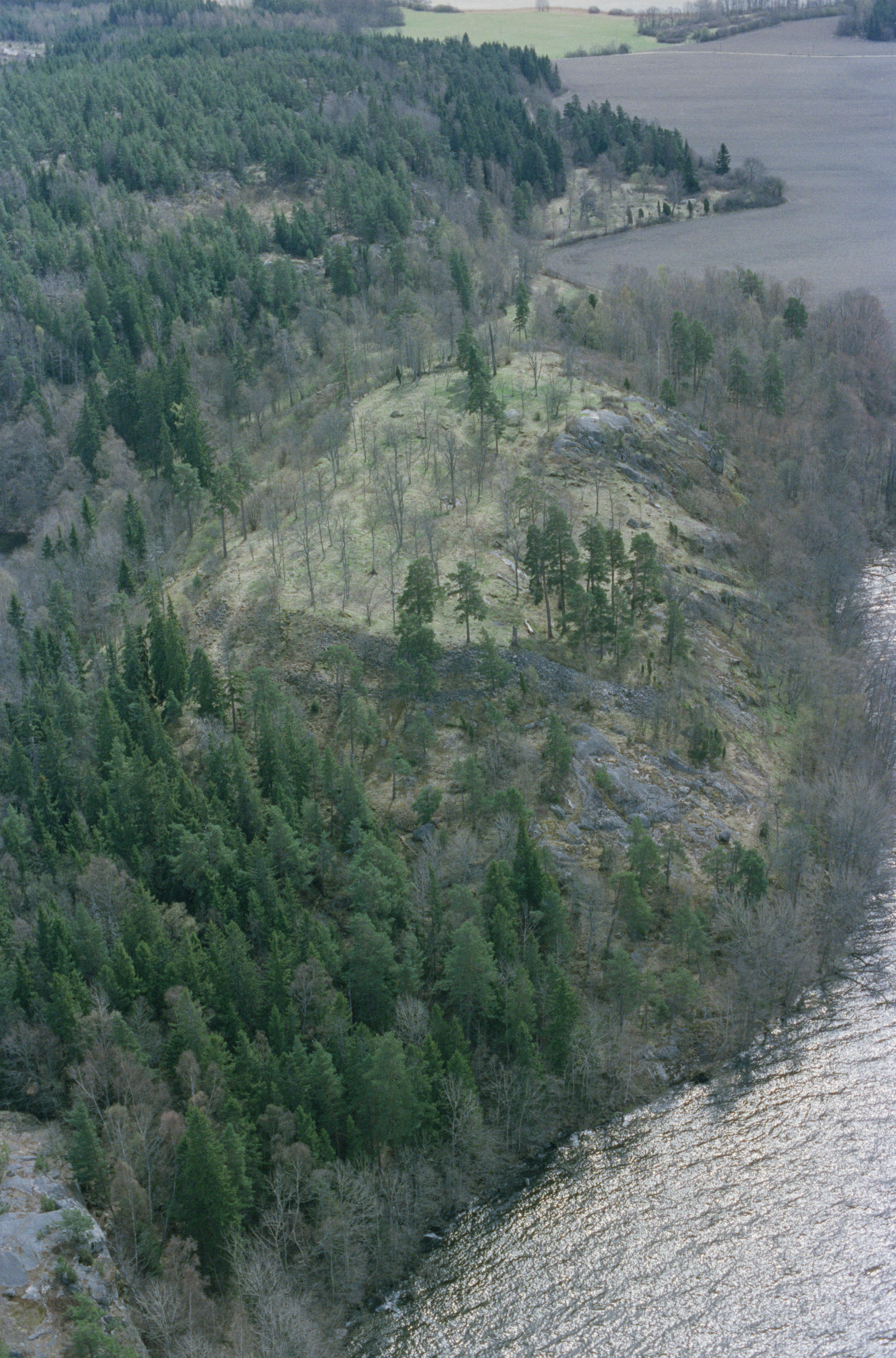 Beskrivning: Runsa fornborg / ?Runsa borg? RAÄnr Ed 2:1. I bildens övre del Runsa gravfält med skeppssättning RAÄnr Ed 1:1. Bilden är tagen mot (väderstreck): SSO