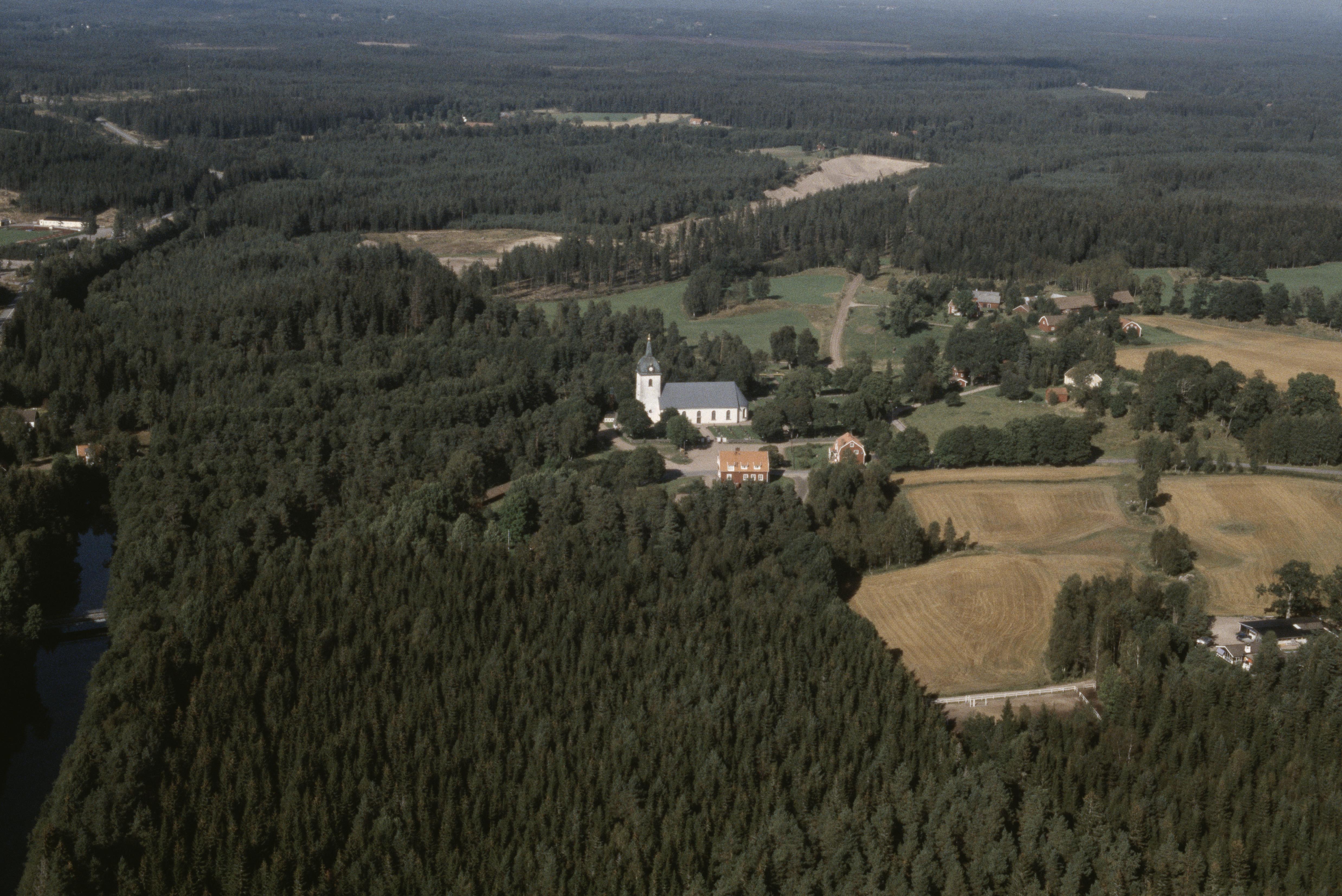 Beskrivning: Villstads kyrka och kyrkby. Bilden är tagen mot (väderstreck): N
