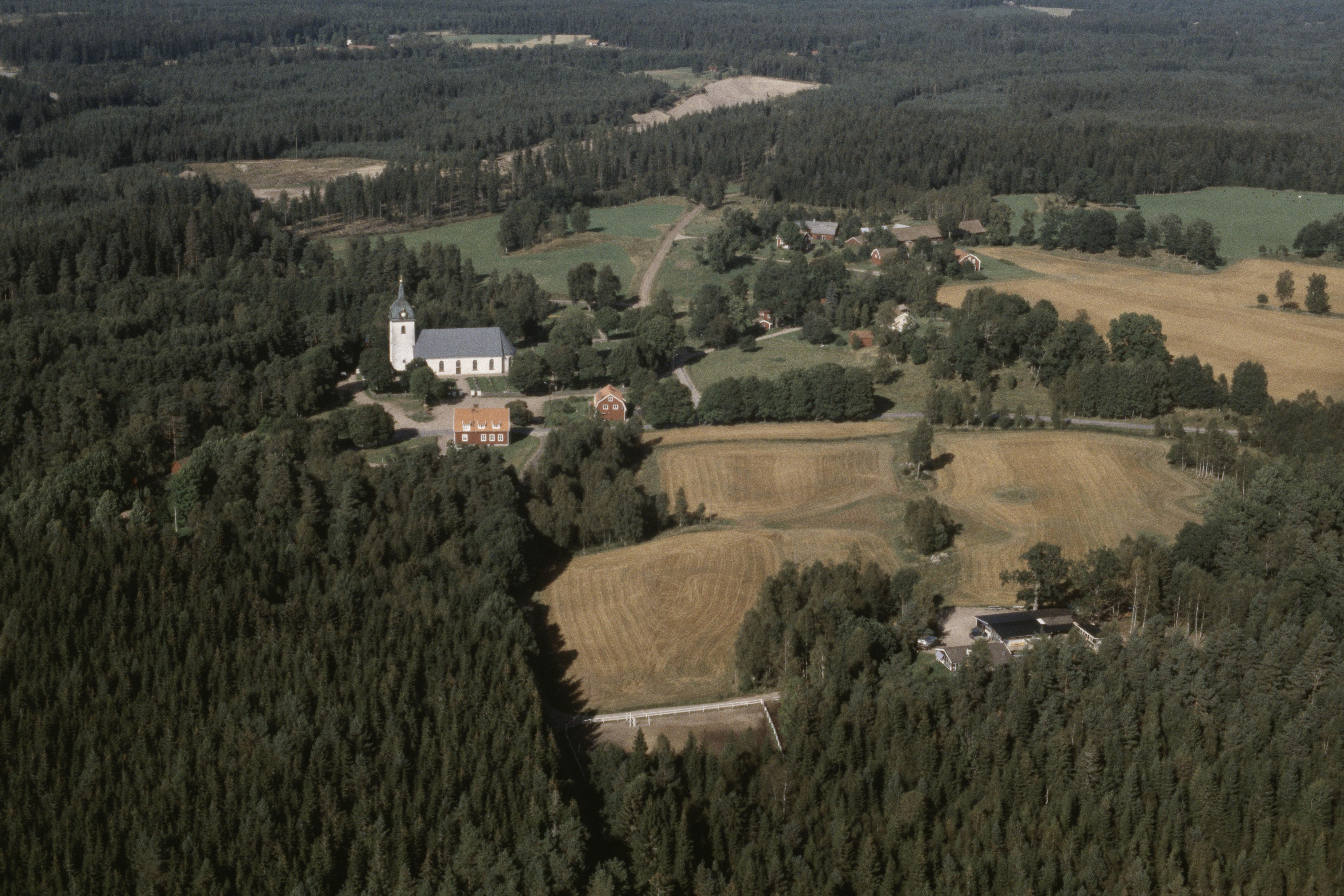 Beskrivning: Villstads kyrka och kyrkby. Bilden är tagen mot (väderstreck): N
