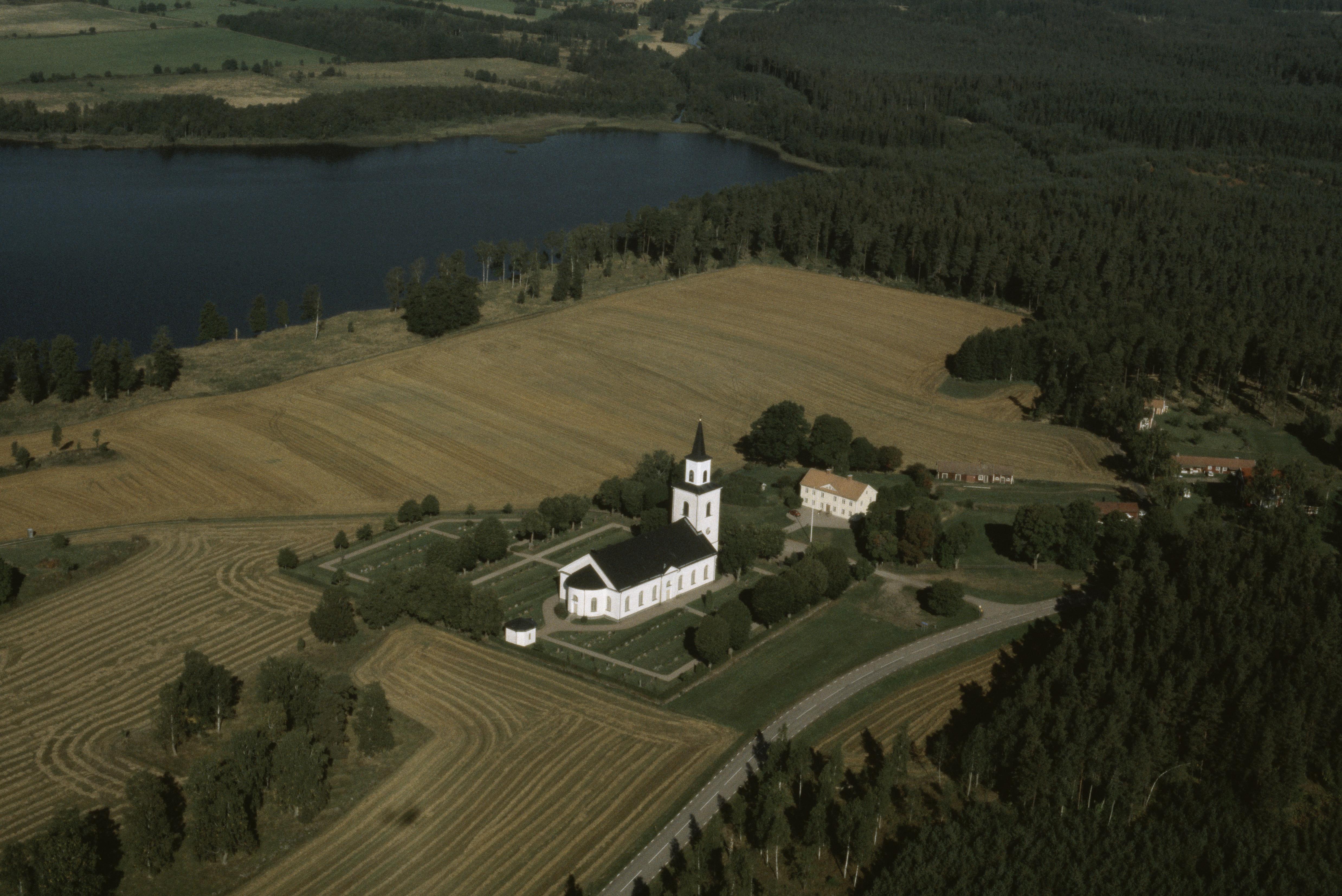 Beskrivning: Flisby kyrka och kyrkby. Bilden är tagen mot (väderstreck): NV