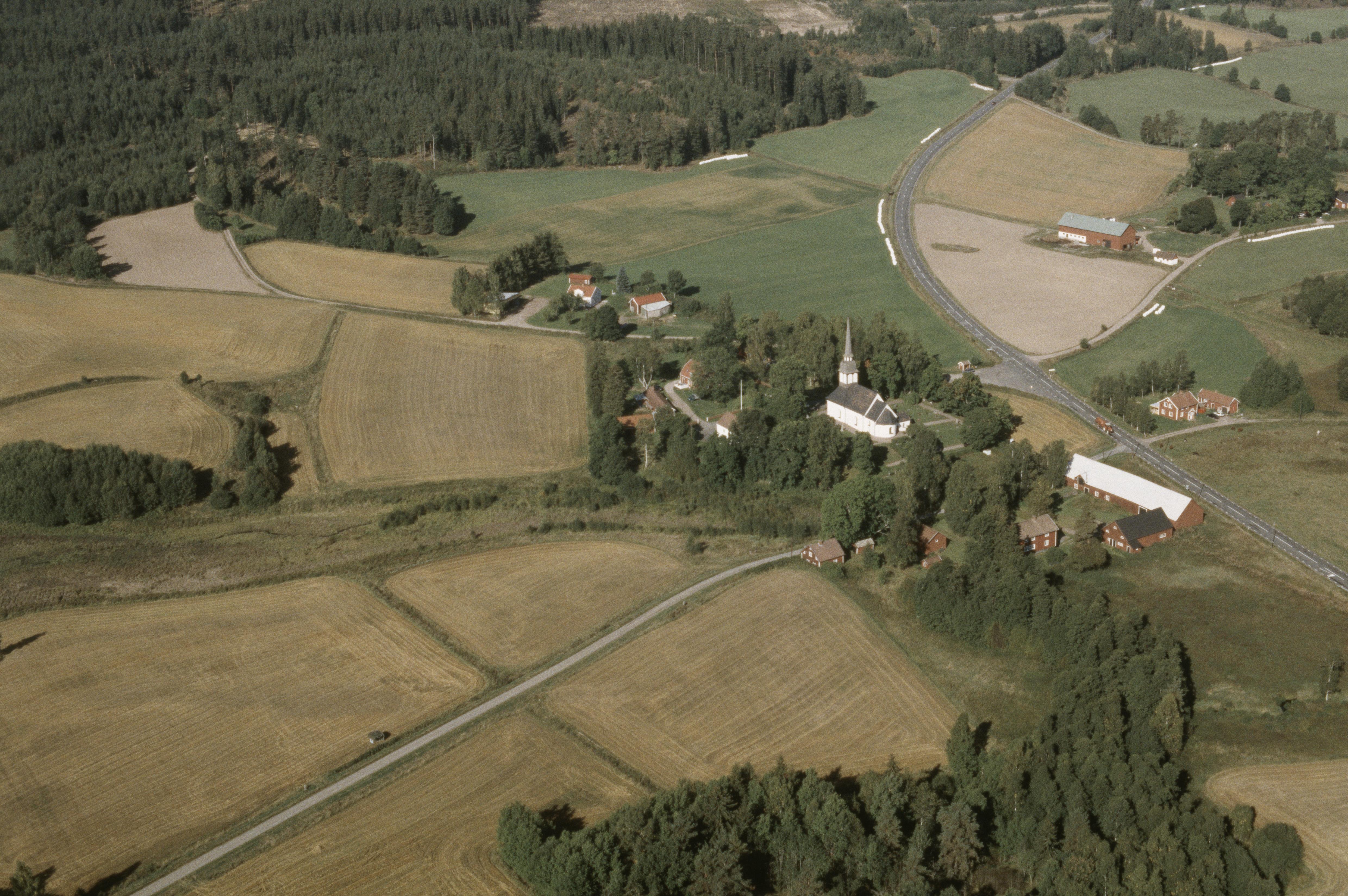 Beskrivning: Bredestads kyrka och kyrkby. Bilden är tagen mot (väderstreck): NV