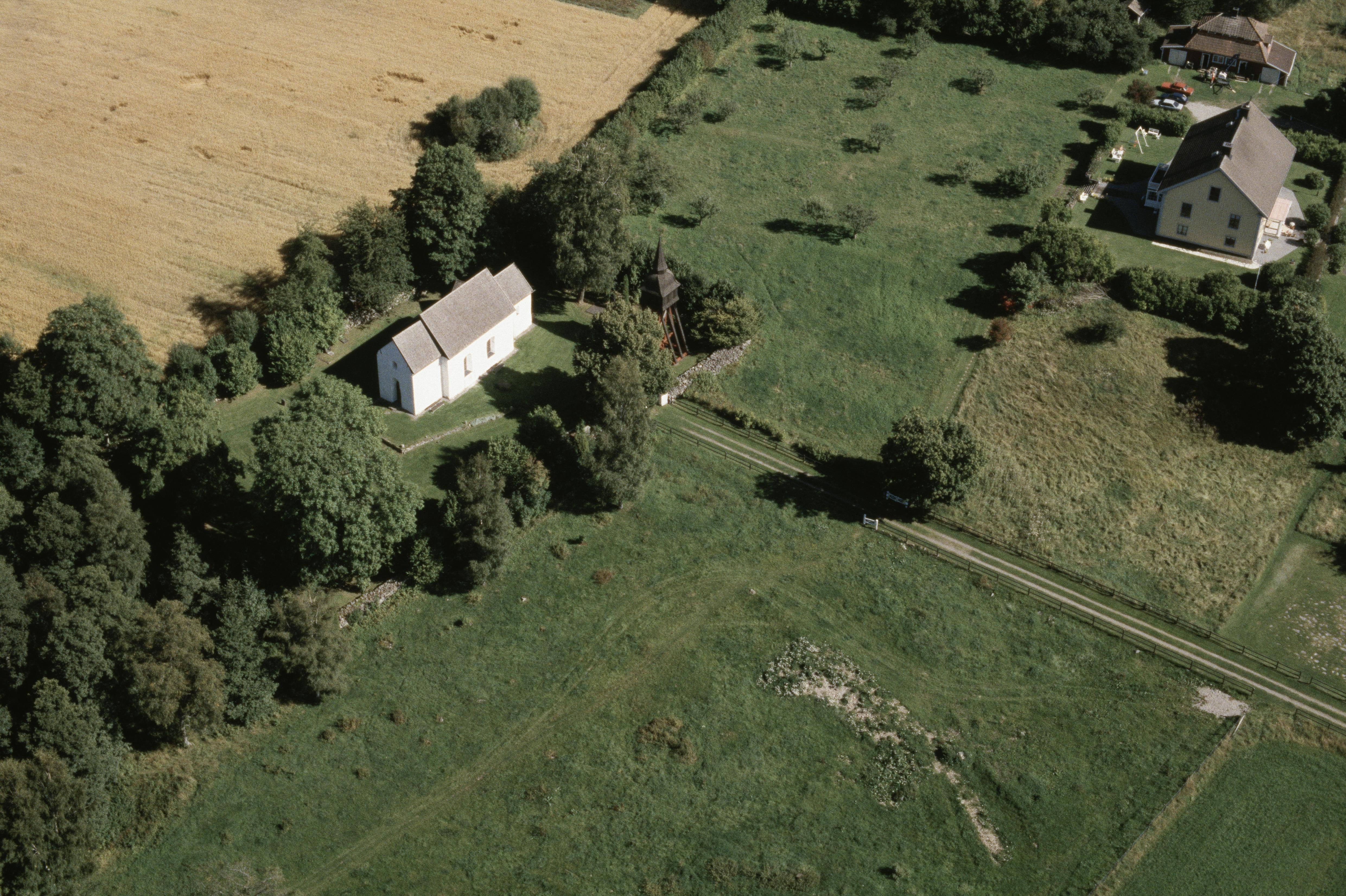 Beskrivning: Vallsjö gamla kyrka och prästgård. Bilden är tagen mot (väderstreck): NO