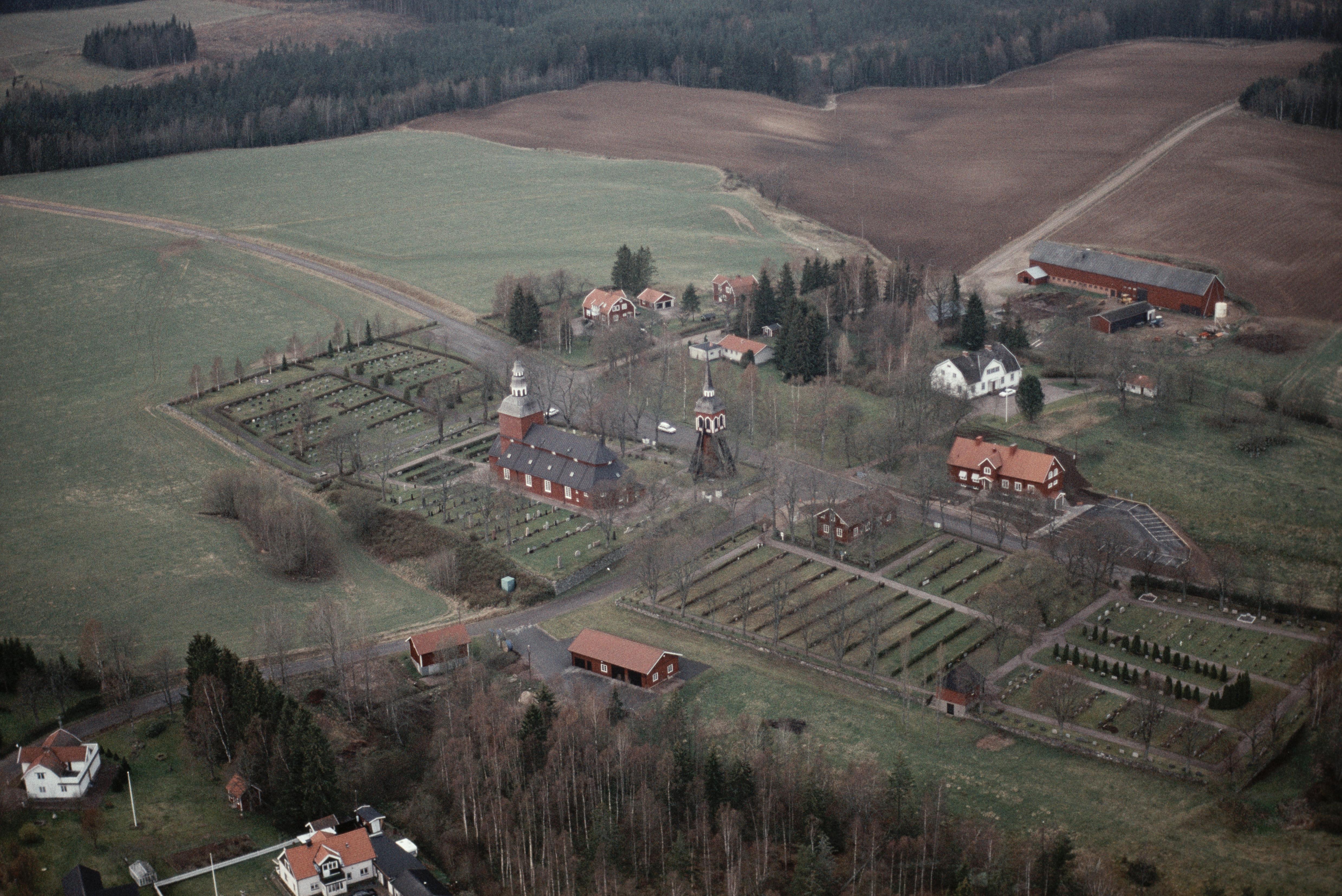 Beskrivning: Anmärkning (övrig): Riksintresse-nr/namn: R59 - Habo. Socken: Habo. Motivering: Kyrkby med ovanligt välbevarad barockkyrka samt sockencentrum, väl framträdande i öppet odlingslandskap. - Uttryck för riksintresset: Rikt dekorerad barockkyrka av trä med medeltida sakristia av sten, fristående klockstapel från 1760, prästgård från 1828 och sockenstuga. Jordbrukspräglad landskapsbild. [Texten uppdaterat av Riksantikvarieämbetet våren 2013.] Beskrivning: Habo kyrka och kyrkby. Bilden är tagen mot (väderstreck): NV Fotosyfte: Flygbildsdokumentation