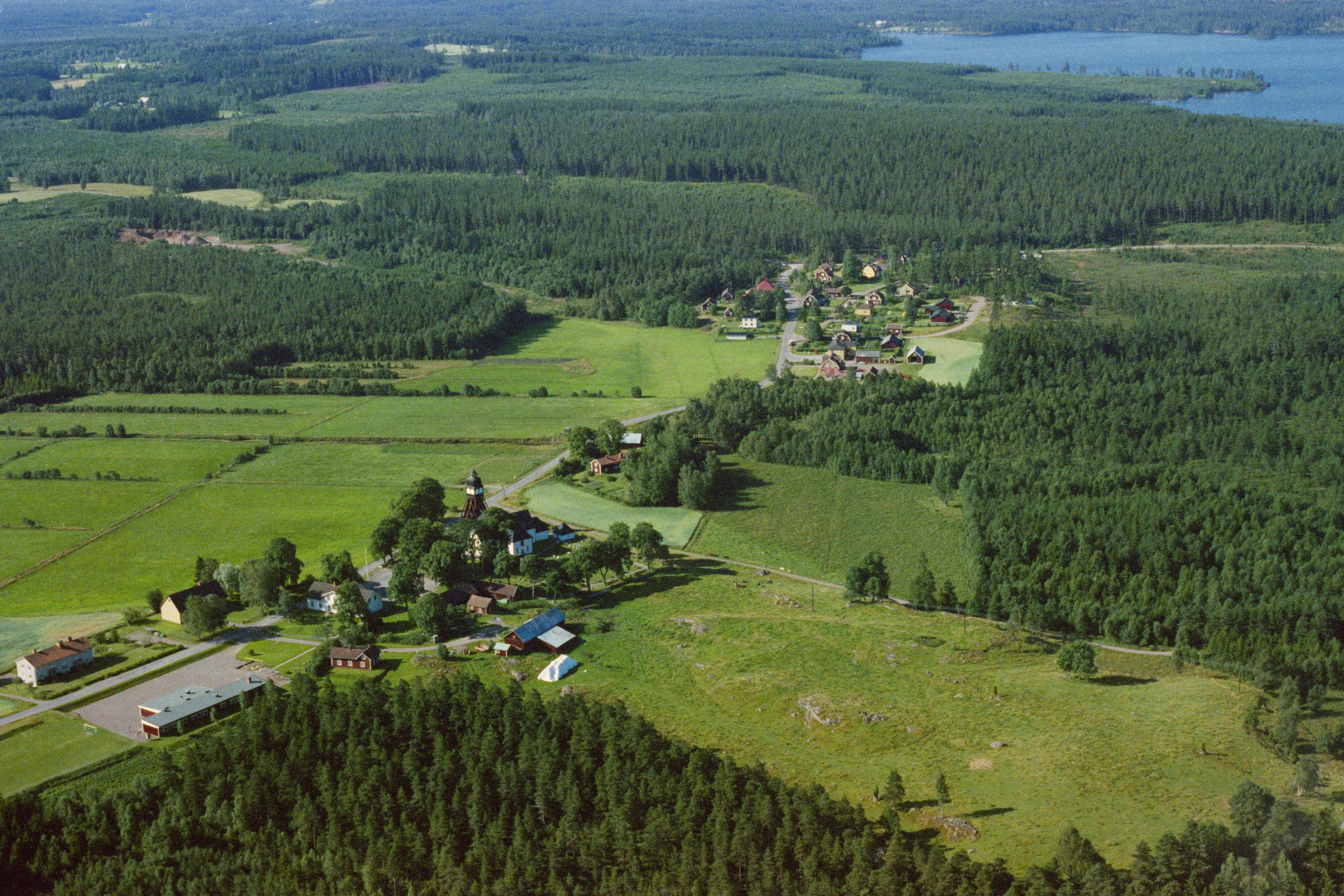 Beskrivning: Askeryds kyrka och kyrkby. Bilden är tagen mot (väderstreck): SV