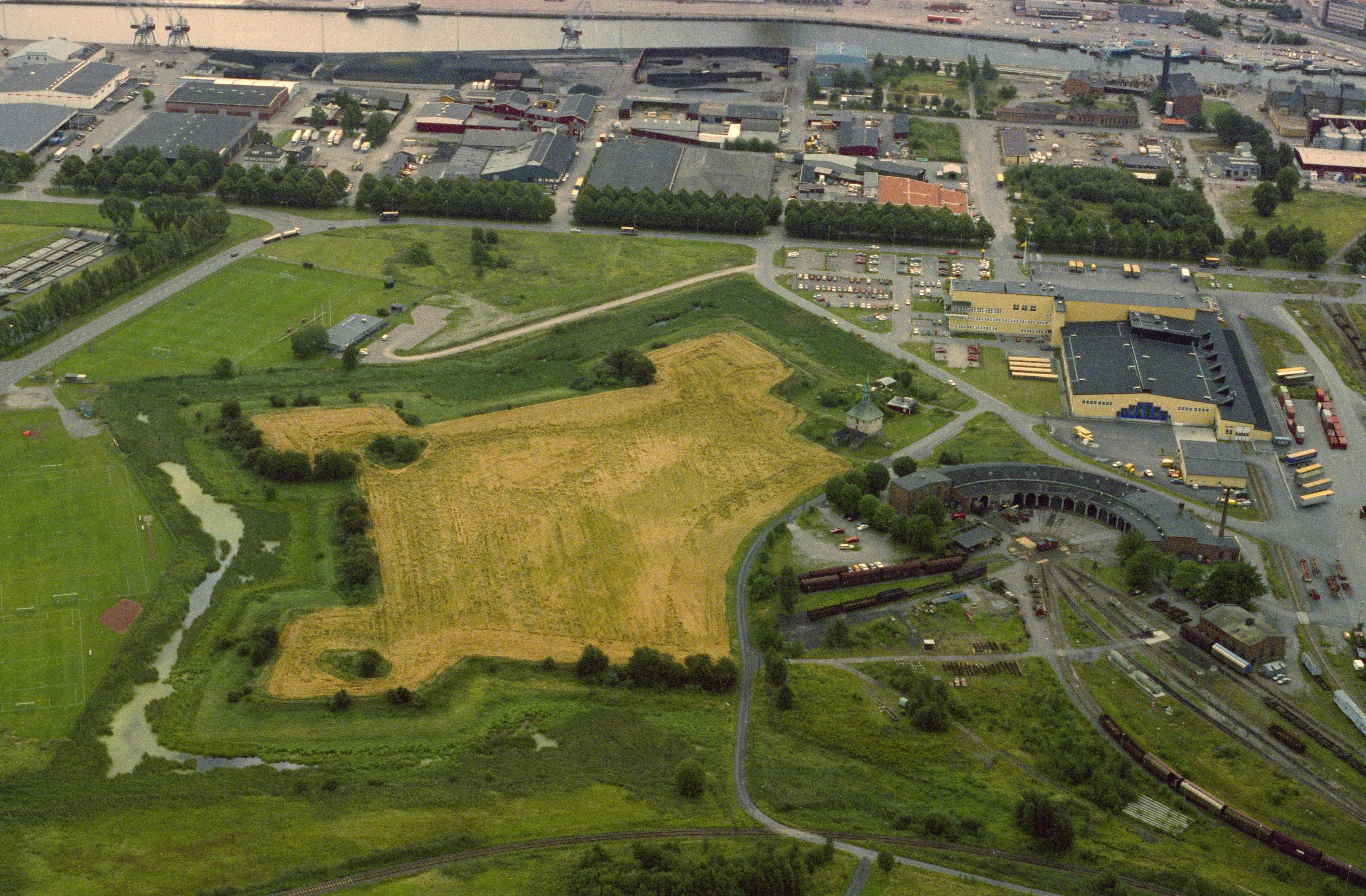 Beskrivning: Befästningsruiner, ursprungligen i regelbunden femuddig stjärnform. Johannisborgs slottsruin RAÄnr Sankt Johannes 51:1. Bilden är tagen mot (väderstreck): SO