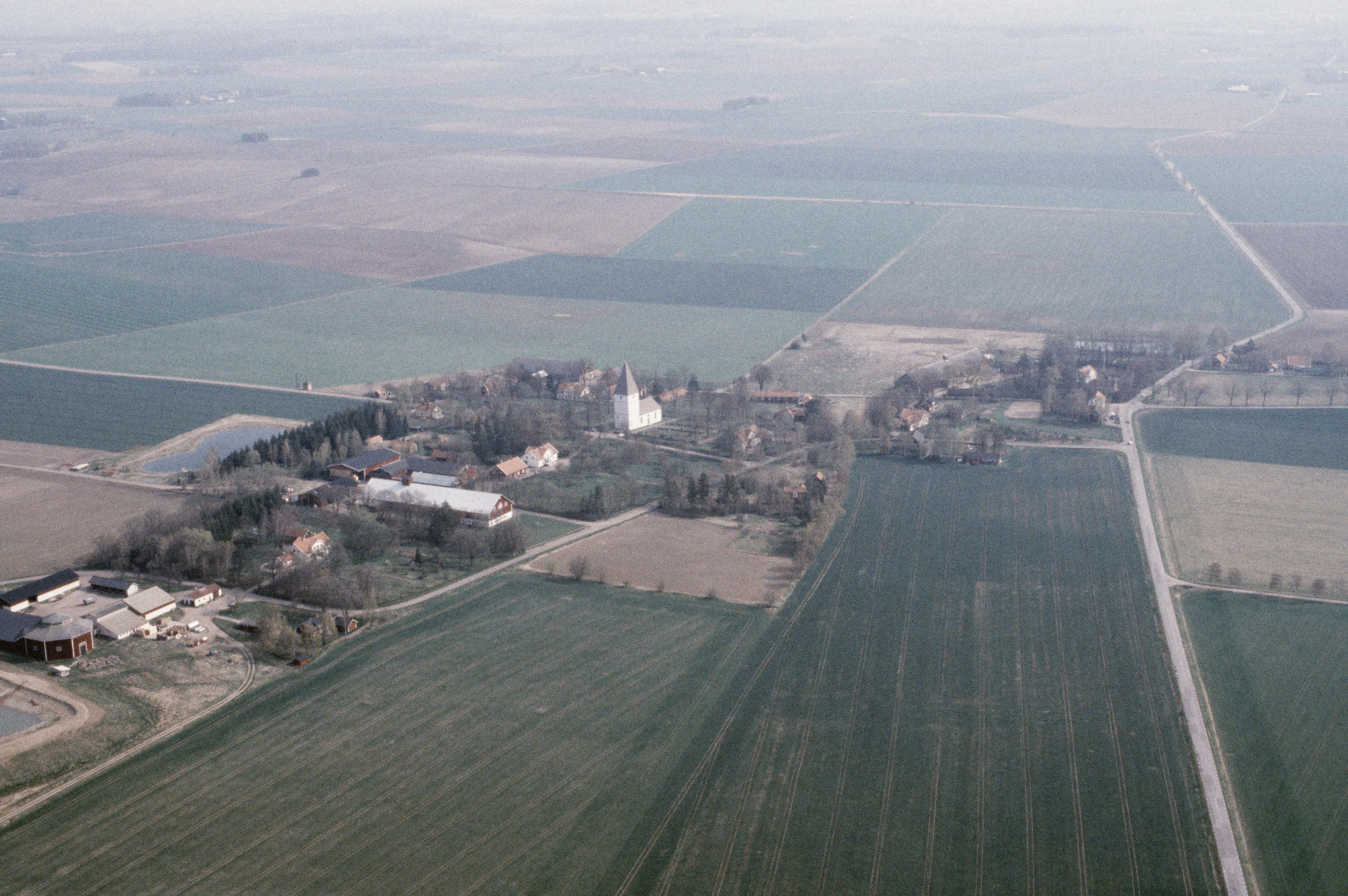 Beskrivning: Bjälbo kyrka och kyrkby. Bilden är tagen mot (väderstreck): NO