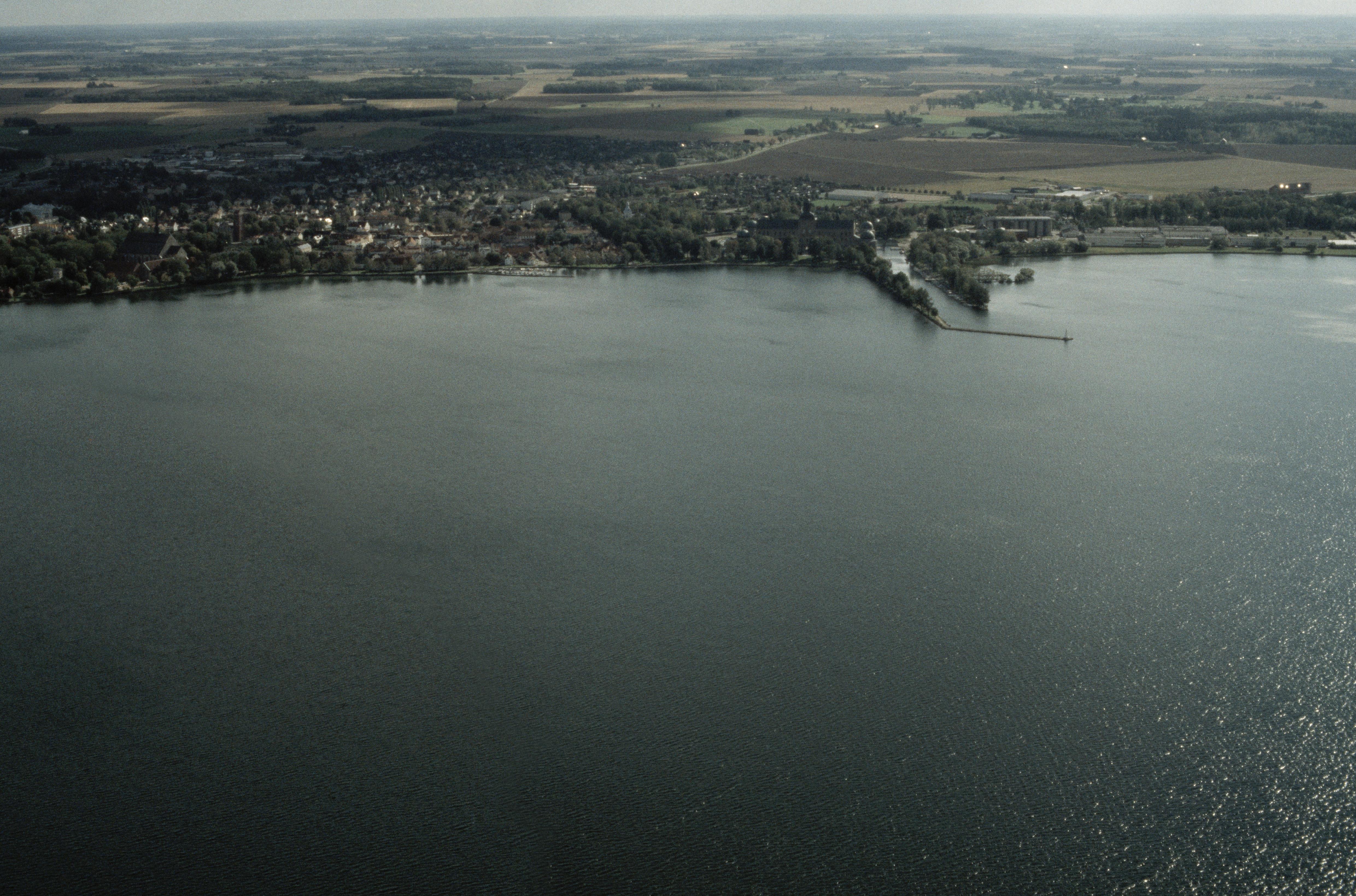 Beskrivning: Vadstena stad. Vadstena slott och hamn uppe till höger. Uppe till vänster Vadstena kloster. Bilden är tagen mot (väderstreck): S