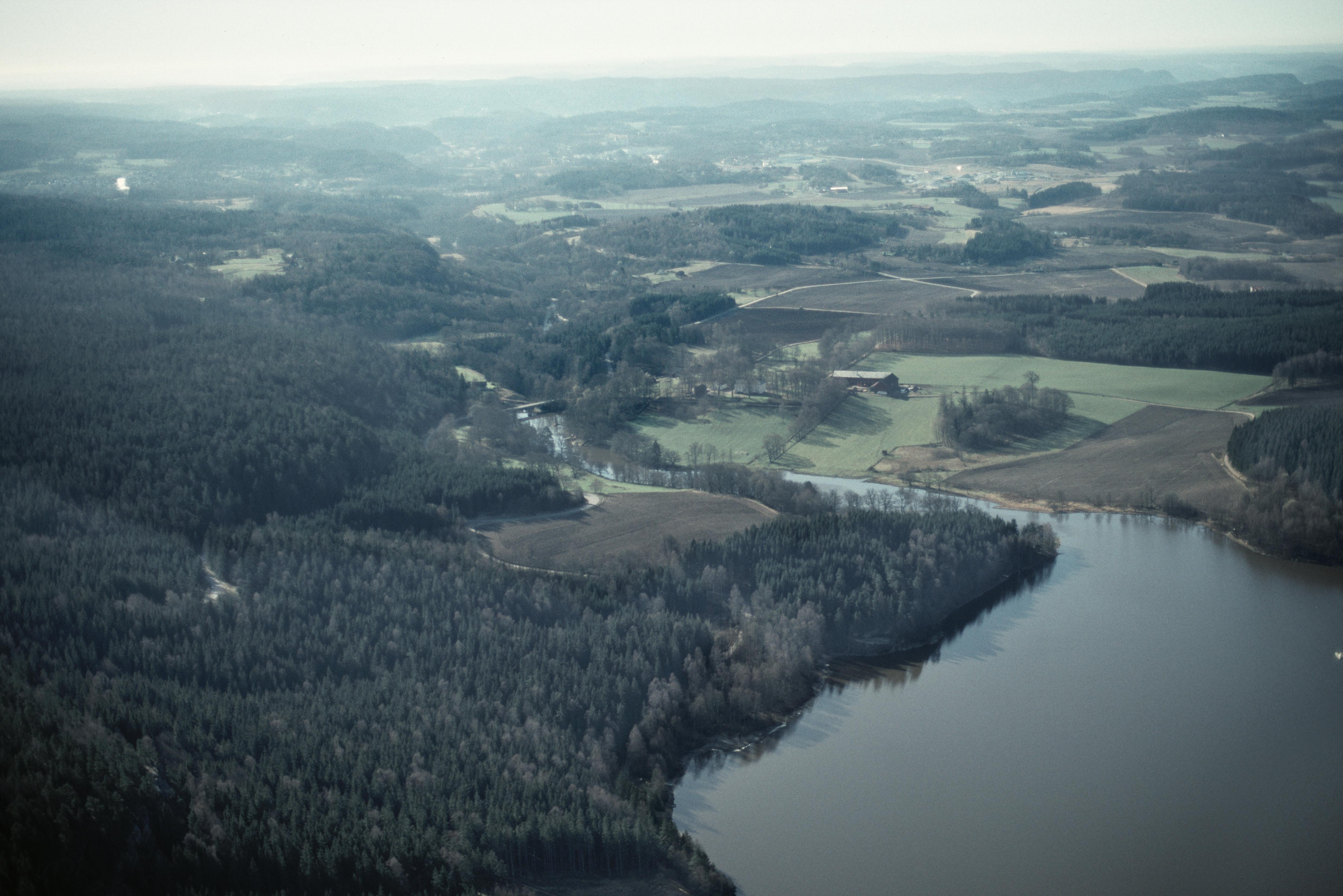 Beskrivning: Örekilsälvens dalgång. Torps herrgård vid viken Torpskilen i Kärnsjön. Bytomt RAÄnr Håby 265:1. Bilden är tagen mot (väderstreck): S