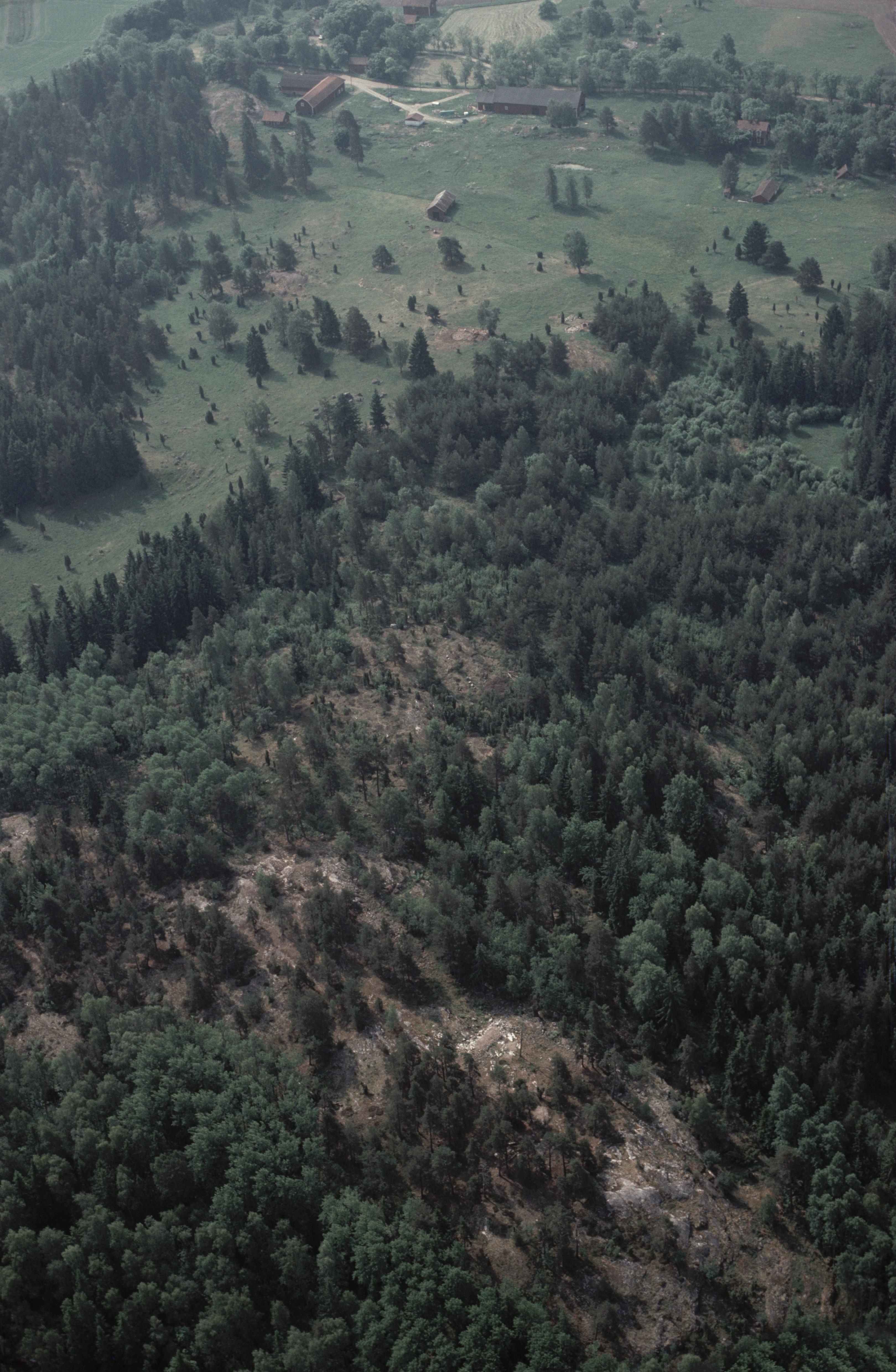 Beskrivning: Området Fjället i sydvästra delen av Angarnssjöängen, Långhundraleden. I bildens nedre del fornborg RAÄnr Vallentuna 265:1. I bildens övre del Lingsbergs by. Bilden är tagen mot (väderstreck): SSO