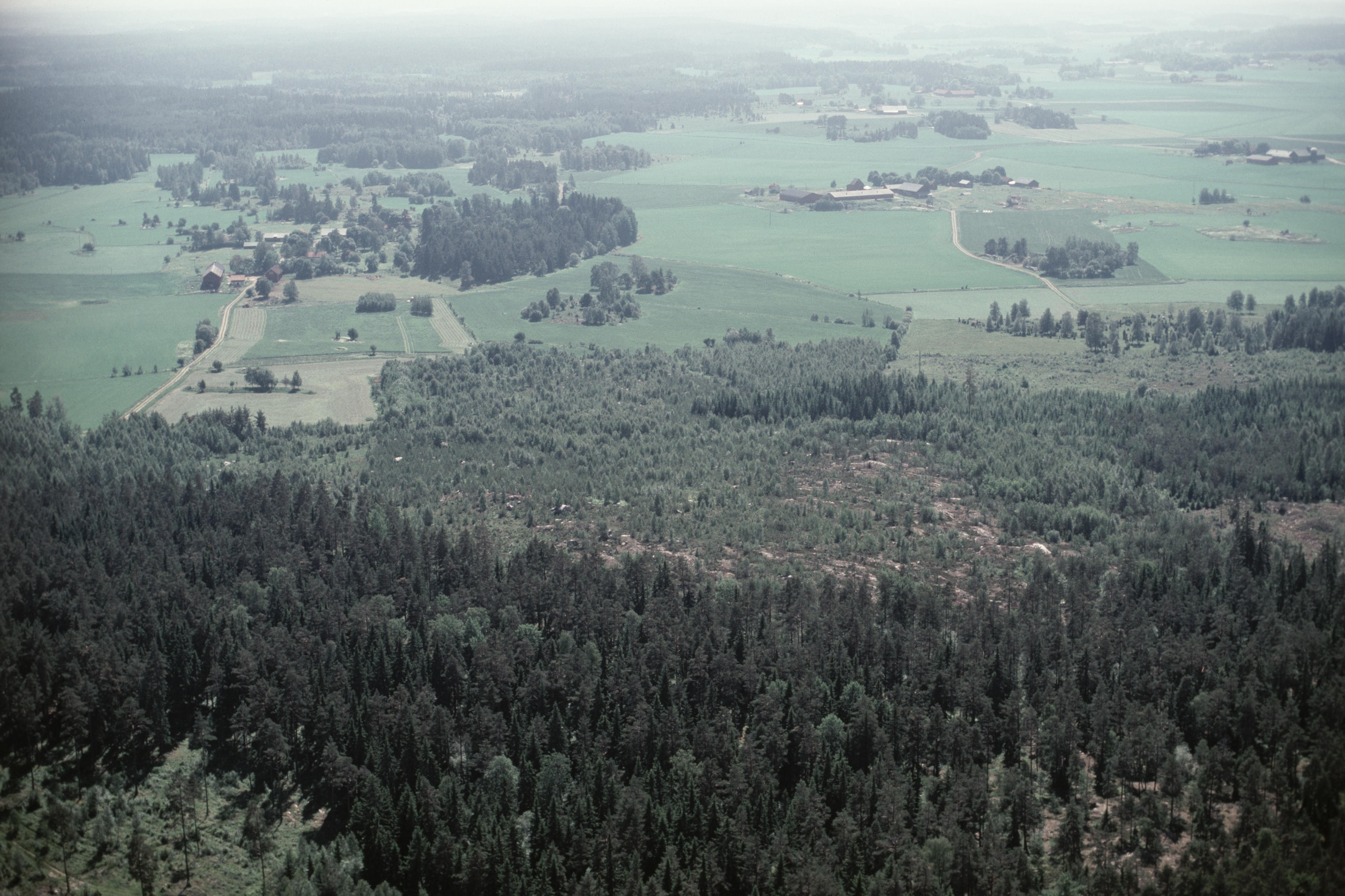 Beskrivning: Vid sockengränsen mellan Orkesta (till vänster) och Markim (till höger). Gravfälten RAÄnr Orkesta 32:1 och Orkesta 31:1 vid området Vaxtuna till vänster om bildens mitt. Till höger om bildens mitt Viby gård i socknet Markim. Bilden är tagen mot (väderstreck): SSV