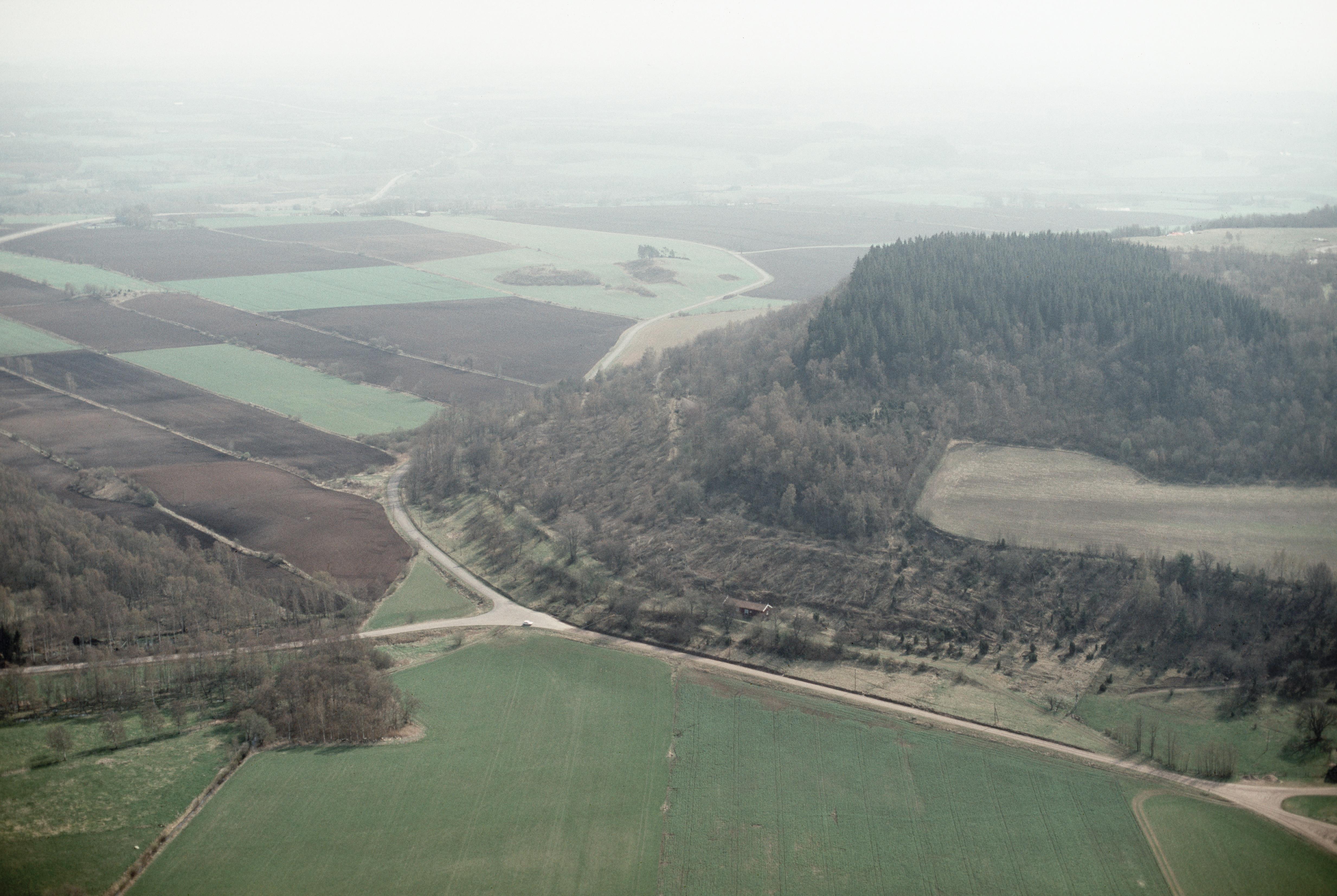 Beskrivning: Ållebergs norra sluttning, vid gränsen mellan socknen Karleby och Slöta (i bildens högra del). Färdväg RAÄnr Karleby 6:1 vid Övregården till höger om bildens mitt. Bilden är tagen mot (väderstreck): SSO