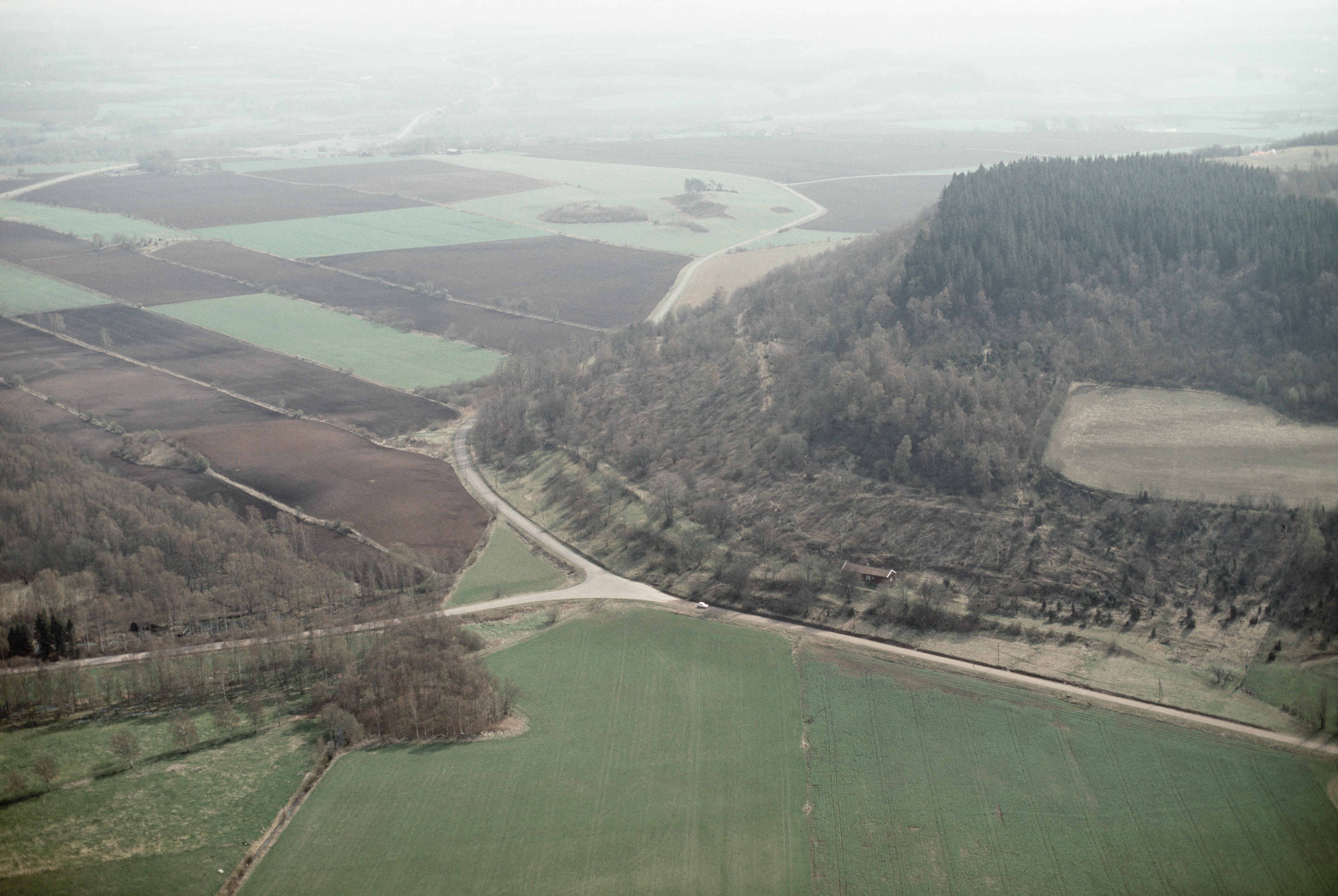 Beskrivning: Ållebergs norra sluttning, vid gränsen mellan socknen Karleby och Slöta (i bildens högra del). Färdväg RAÄnr Karleby 6:1 vid Övregården till höger om bildens mitt. Bilden är tagen mot (väderstreck): SSO