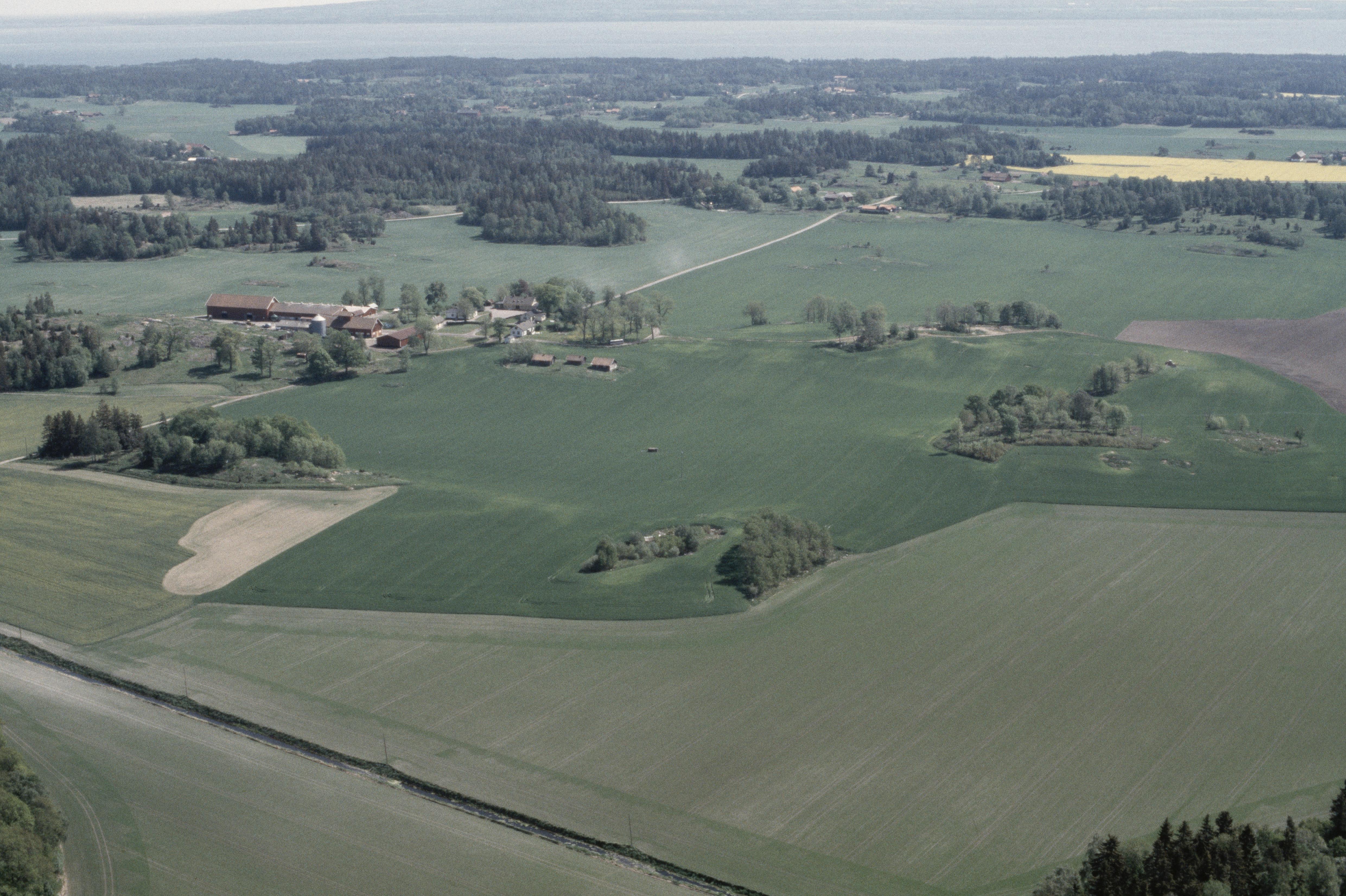 Beskrivning: Vid bildens mitt gravfält RAÄnr Sunnersberg 19:1 och kyrkoruin Sunnersberg 56:1. I bildens övre del gravfält Stenhusbacken RAÄnr Sunnersberg 4:1 m.fl. och Kinneviken. Bilden är tagen mot (väderstreck): Ö