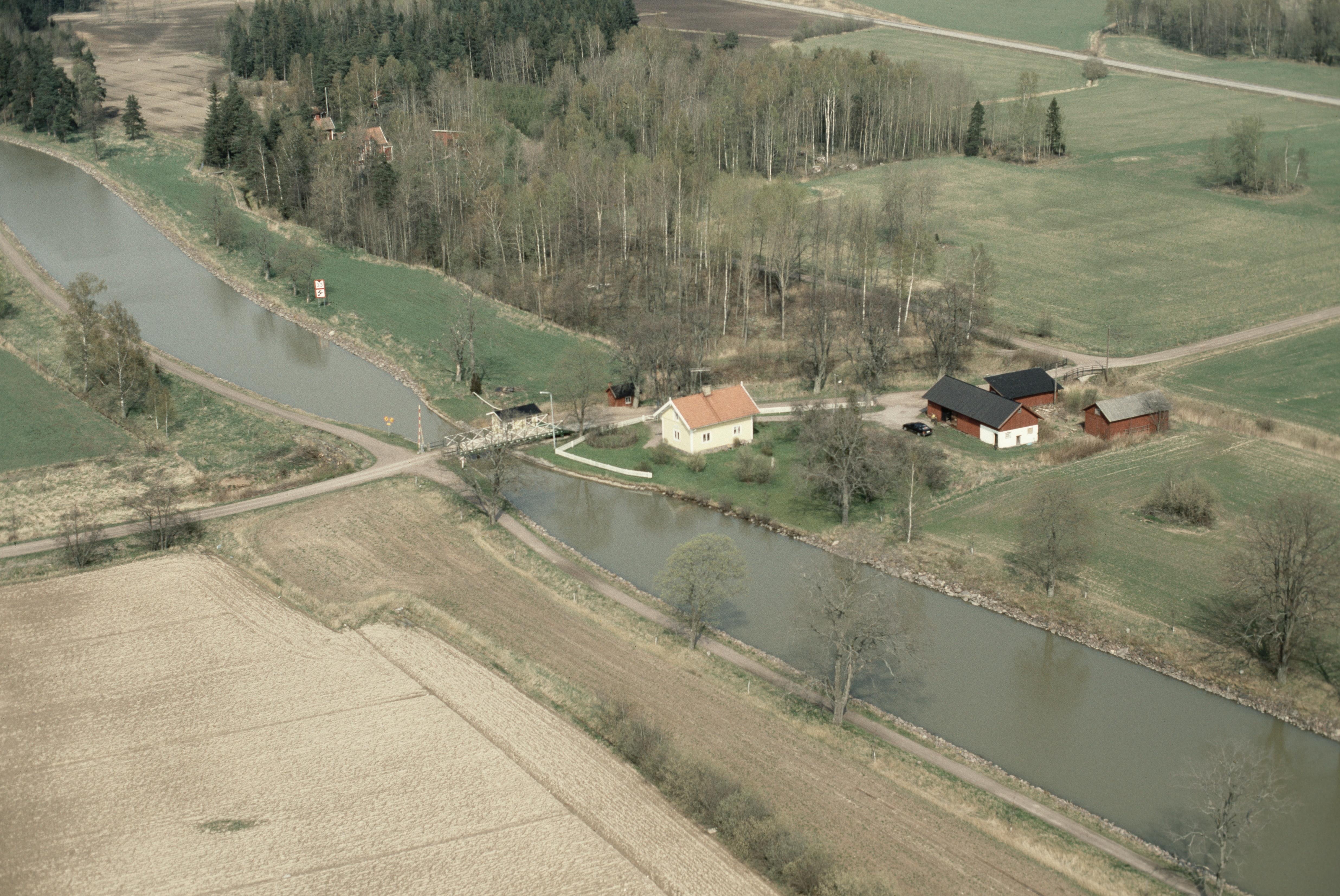 Beskrivning: Göta kanal, bro mellan Kårtorp och Järneberg. Kanalmärke RAÄnr Töreboda 29:1 till vänster i bildens övre del. Bilden är tagen mot (väderstreck): NO