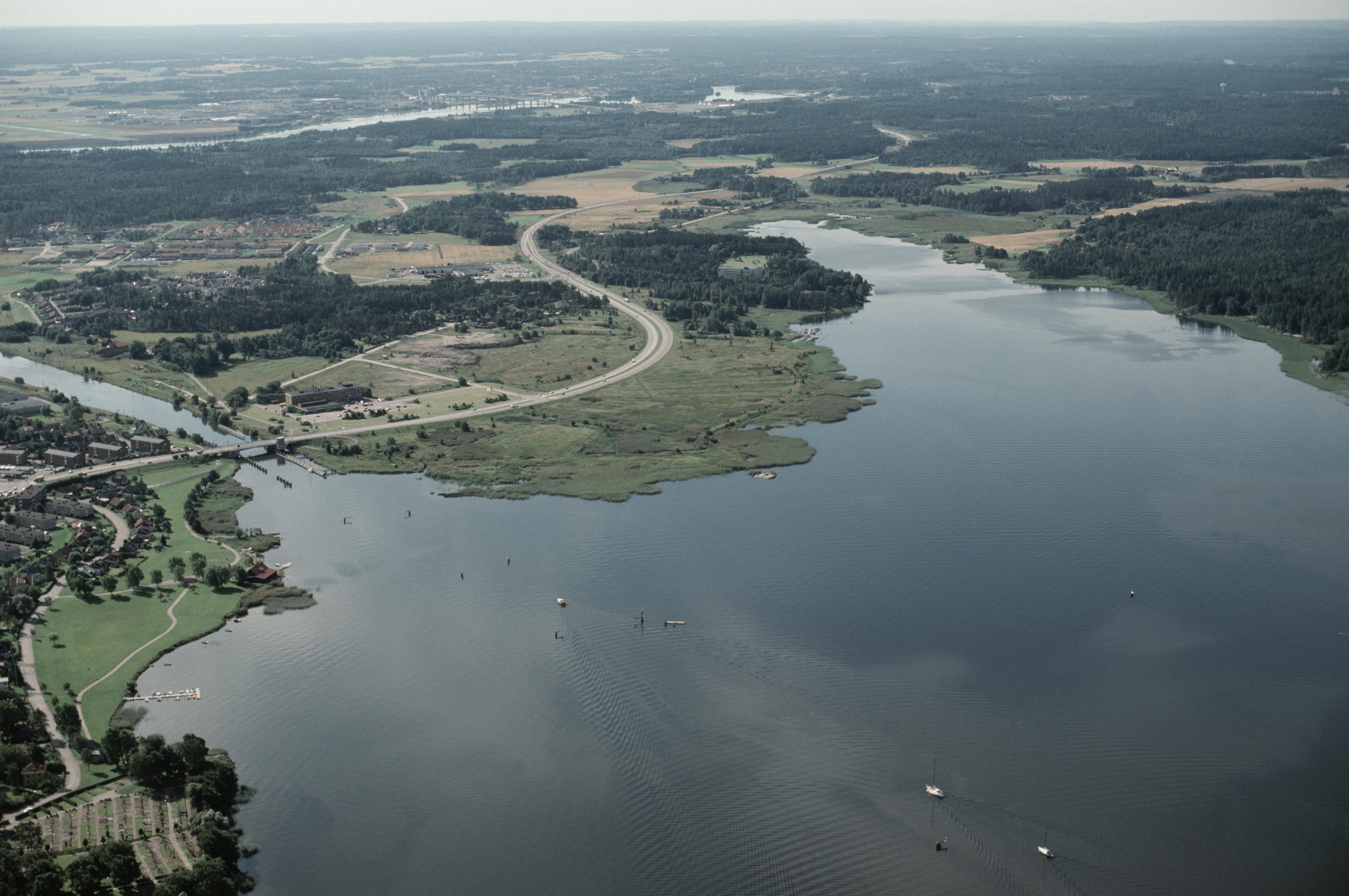 Beskrivning: Sjön Vassbottens södra del. Kanal Karls grav RAÄnr Vänersborg 23:1 till vänster och Vassända uppe till höger. Bilden är tagen mot (väderstreck): S