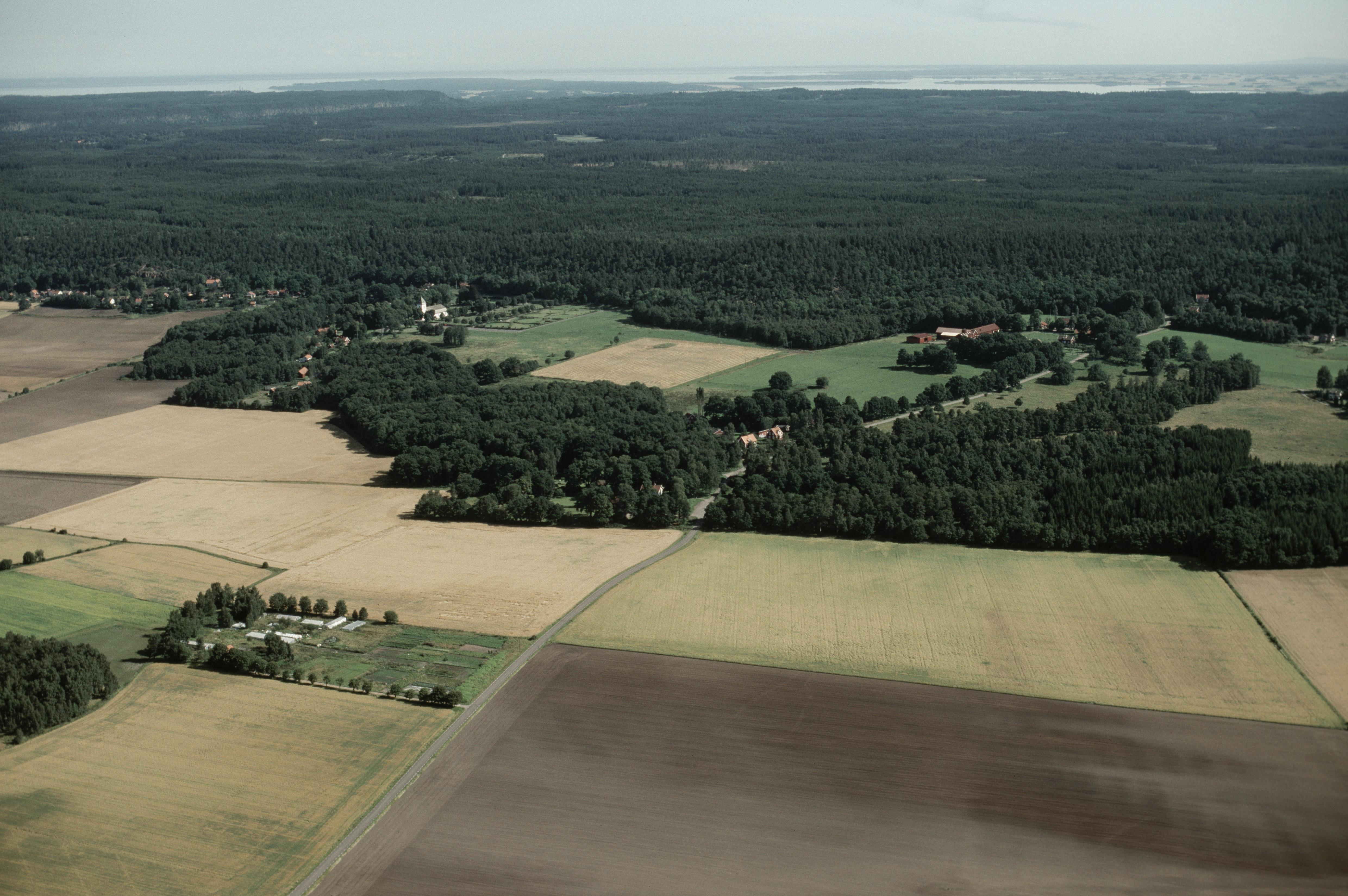 Beskrivning: Västra Tunhem kyrka uppe till vänster. Bilden är tagen mot (väderstreck): NO