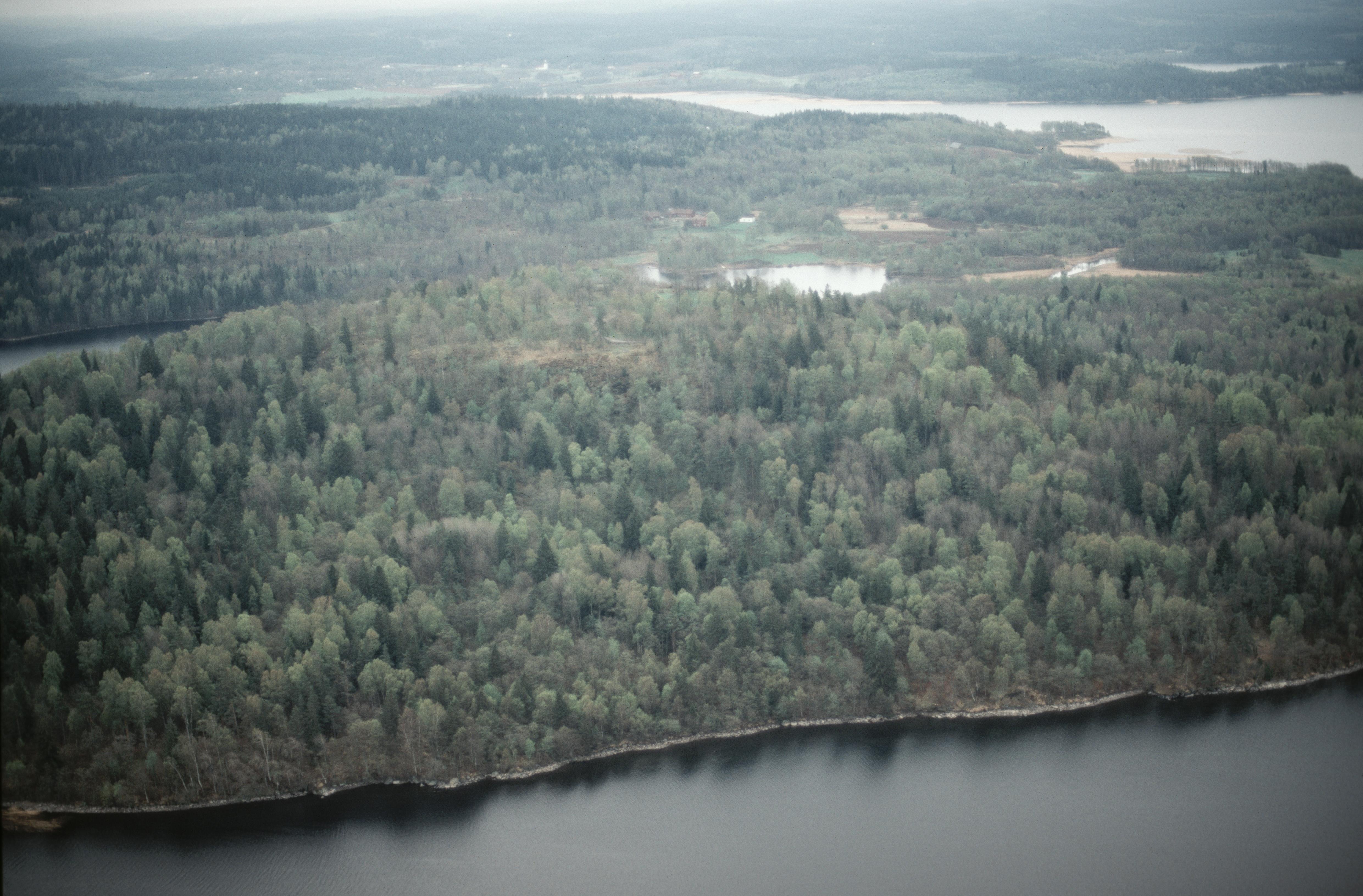 Beskrivning: Hyltenäs slottsruin / Seatons kulle RAÄnr Öxnevalla 32:1 på en udde mellan Västra och Östra Öresjön. Bilden är tagen mot (väderstreck): SV