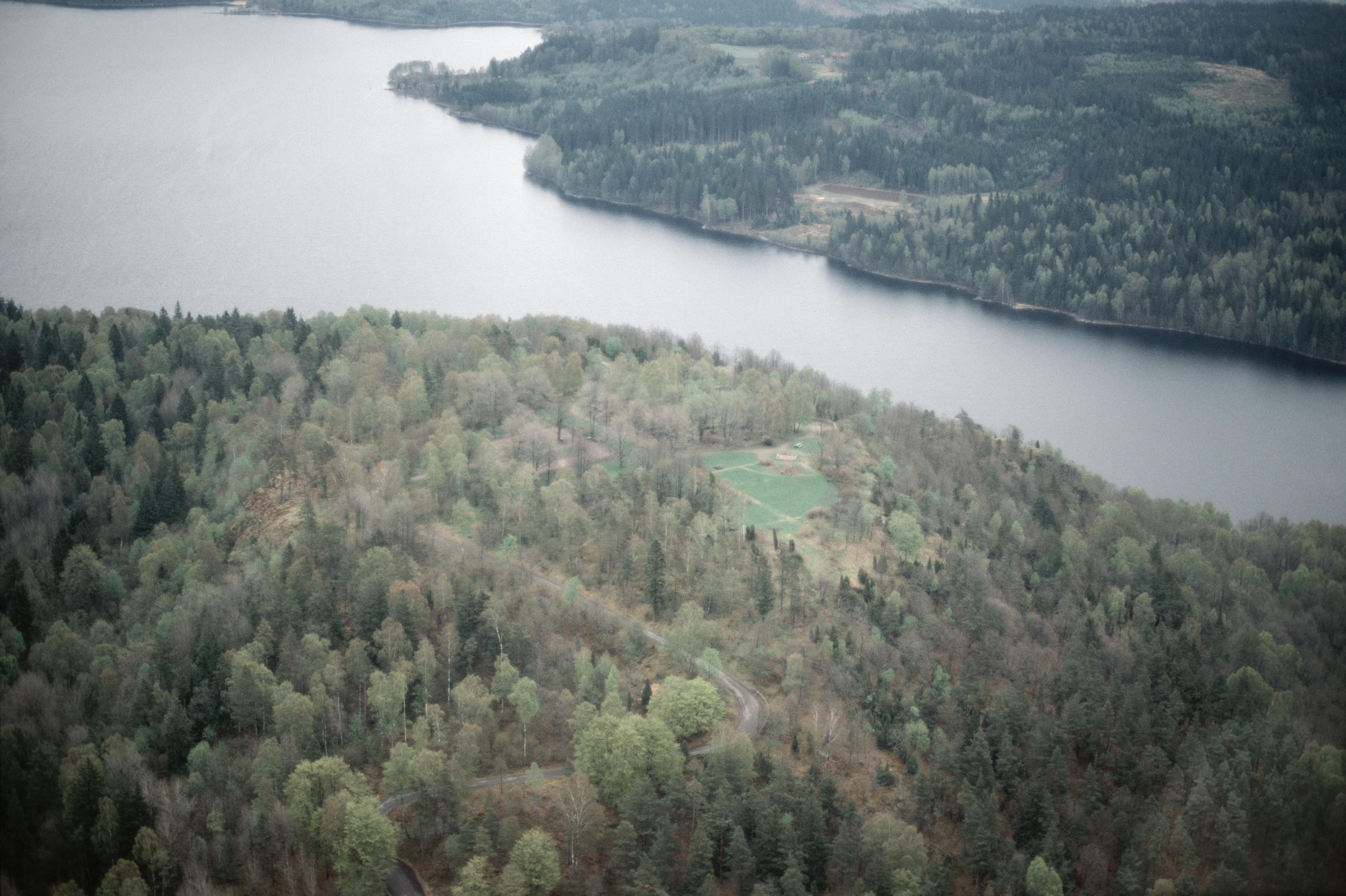 Beskrivning: Hyltenäs slottsruin / Seatons kulle RAÄnr Öxnevalla 32:1 på en udde mellan Västra och Östra Öresjön. Bilden är tagen mot (väderstreck): ONO