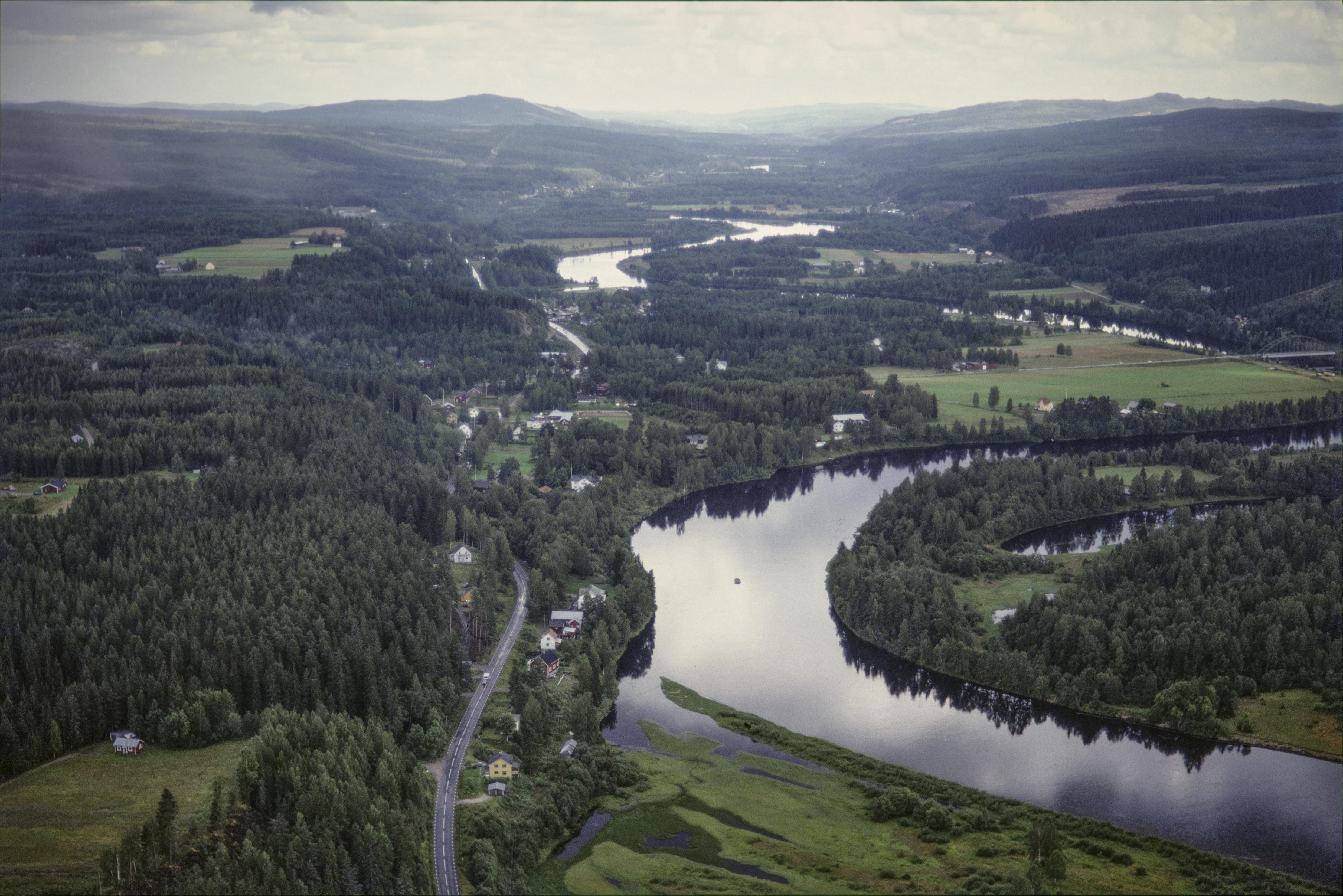 Beskrivning: Likenäs by vid Klarälven. Nere till höger Knappnäs naturrreservat. Vid bildens mitt fångstgrop RAÄnr Dalby 85:1 m.fl. Bilden är tagen mot (väderstreck): SO