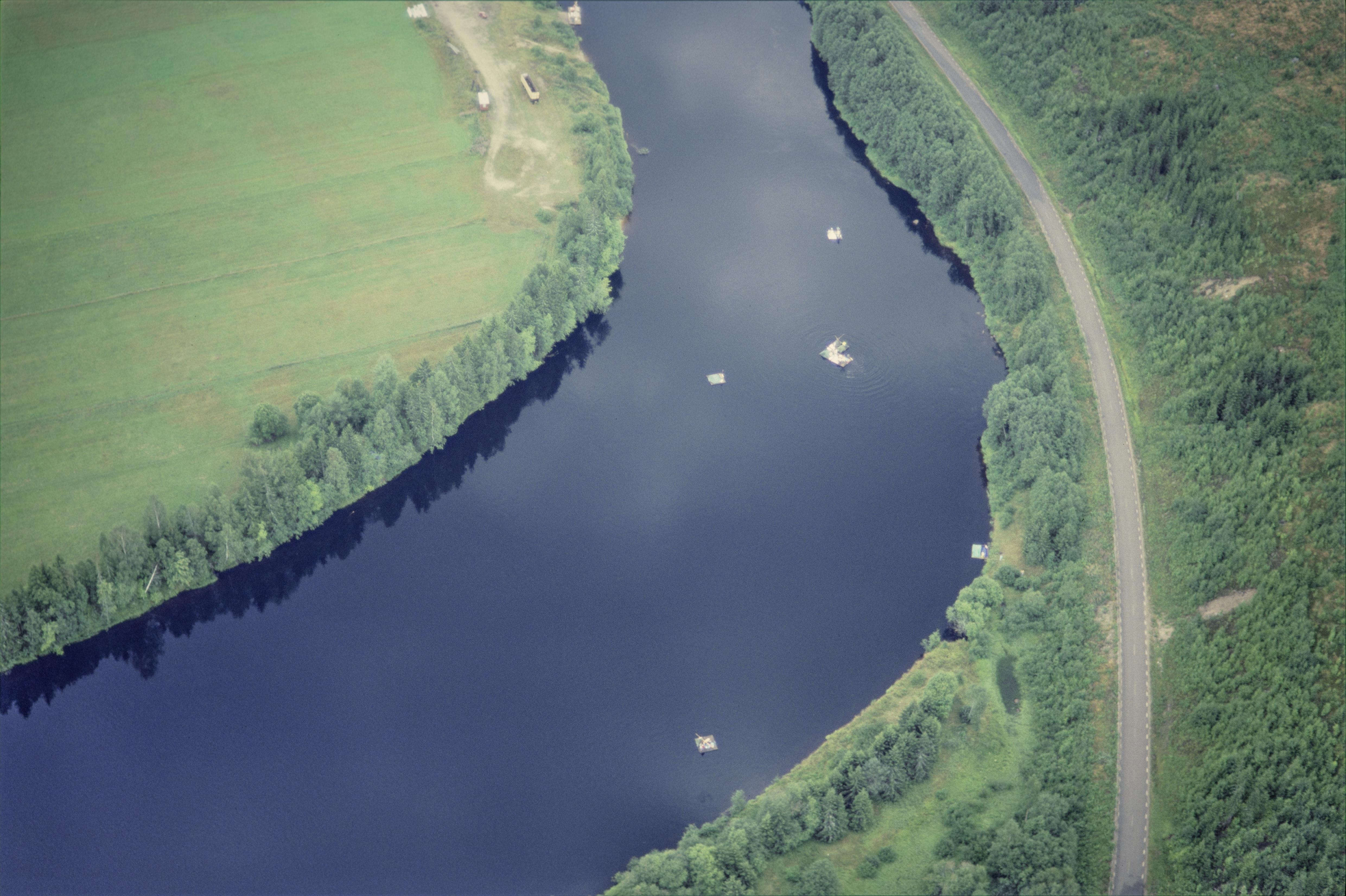 Beskrivning: Flottferd / flottar på Klarälven. Söder om Likenäs by vid bytomt RAÄnr Dalby 517:1. Bilden är tagen mot (väderstreck): SO