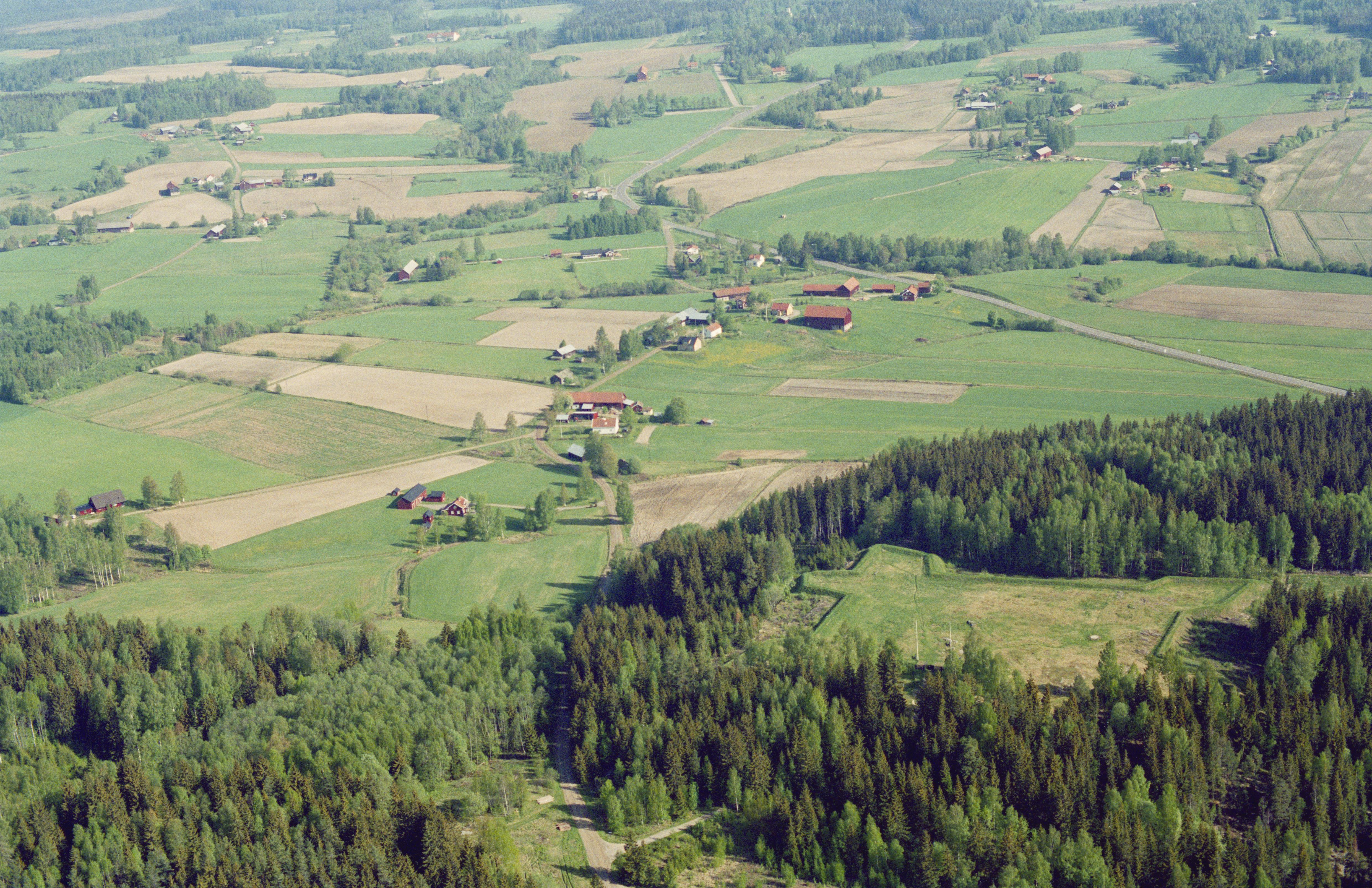 Beskrivning: Eda skansar (fyra skansar vid Hagaviken i Bysjön i södra delen av Eda tätort). Skans RAÄnr Eda 15:1 till höger under bildens mitt. Bilden är tagen mot (väderstreck): NO