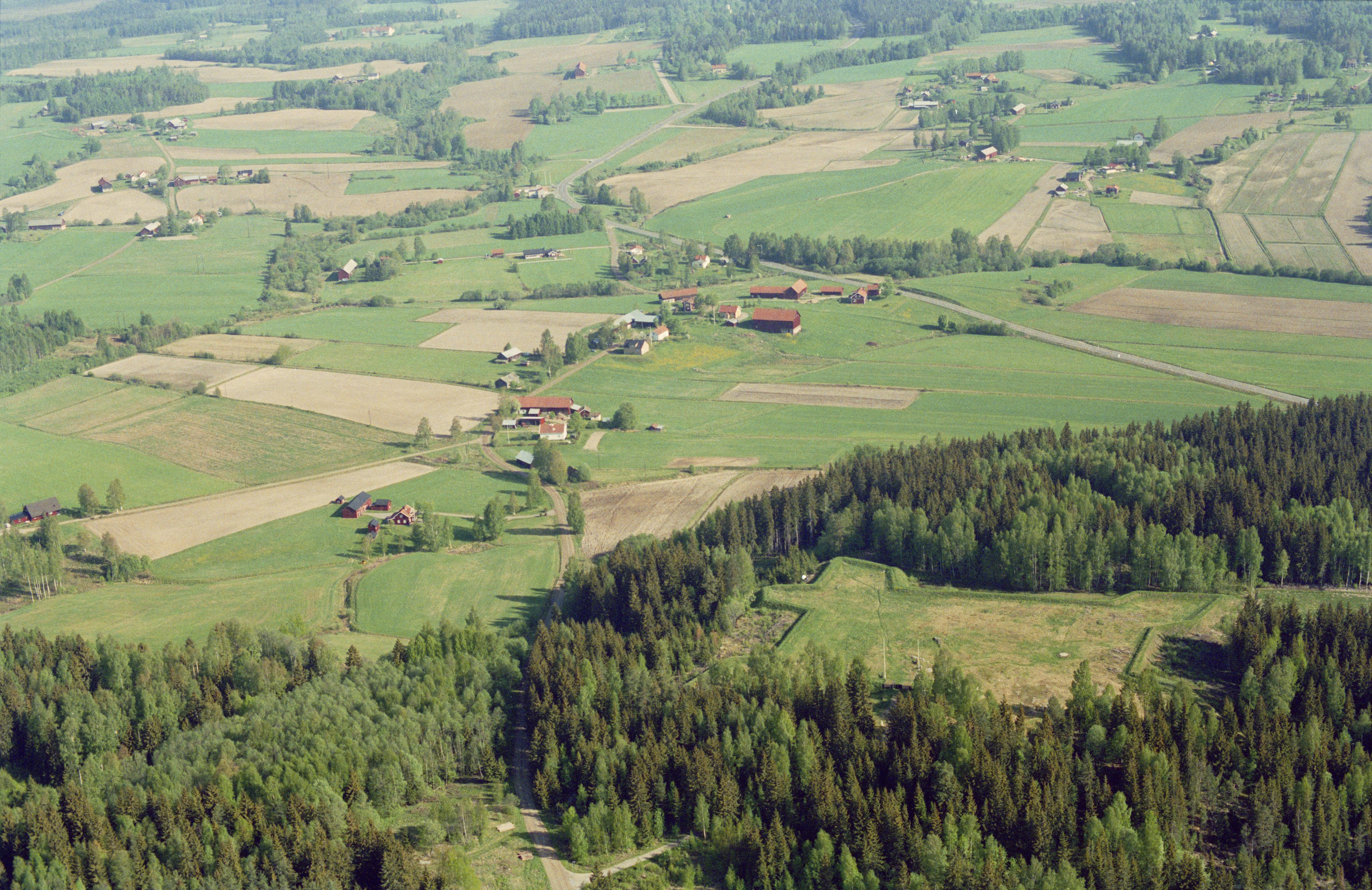 Beskrivning: Eda skansar (fyra skansar vid Hagaviken i Bysjön i södra delen av Eda tätort). Skans RAÄnr Eda 15:1 till höger under bildens mitt. Bilden är tagen mot (väderstreck): NO