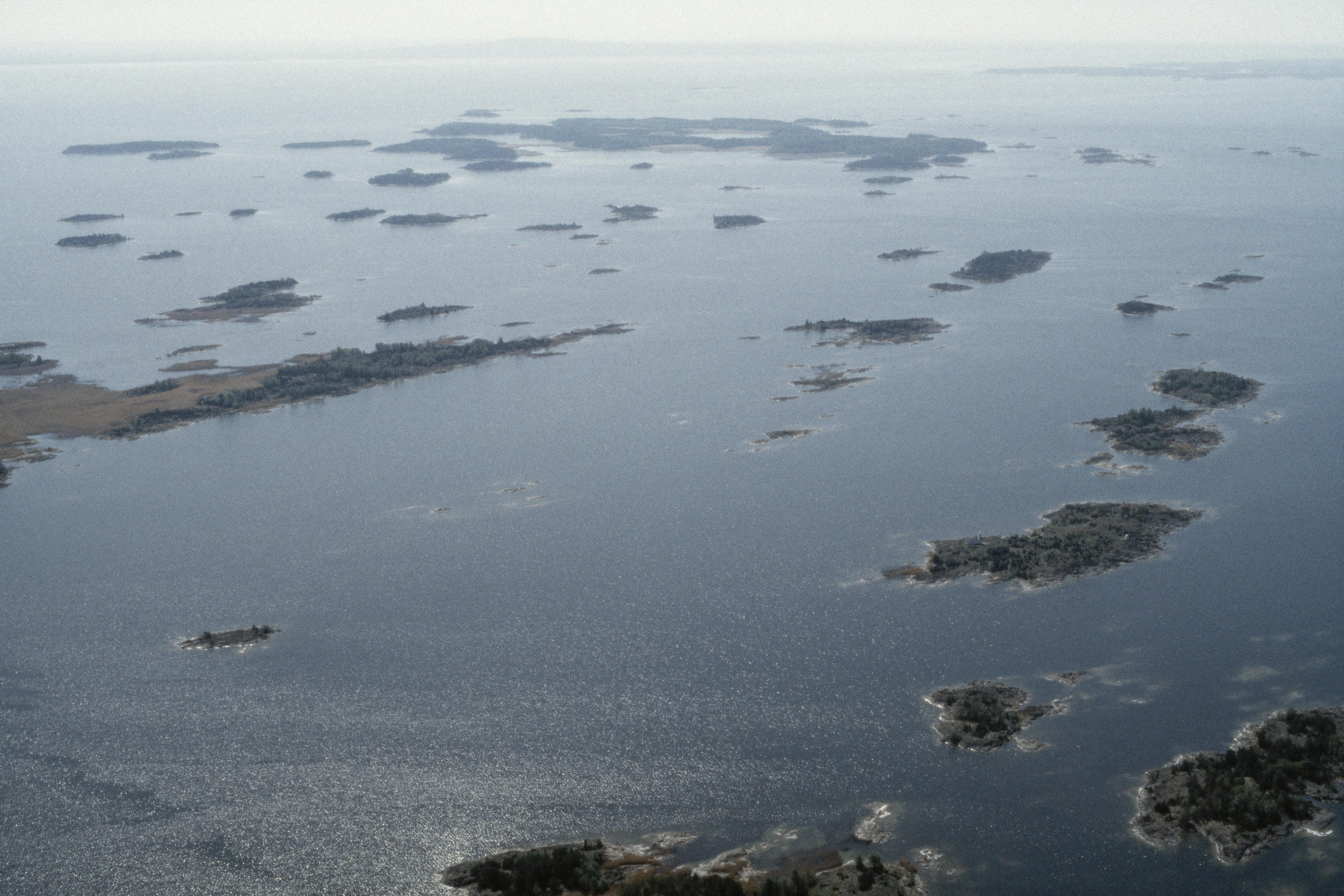 Beskrivning: Eskilsäters skärgård i Lurö naturreservat i sjön Vänern. Till höger om bildens mitt ön Stora Älvalen med sjömärke Eskilsäter 315. Husön i bildens övre del. Bilden är tagen mot (väderstreck): SO