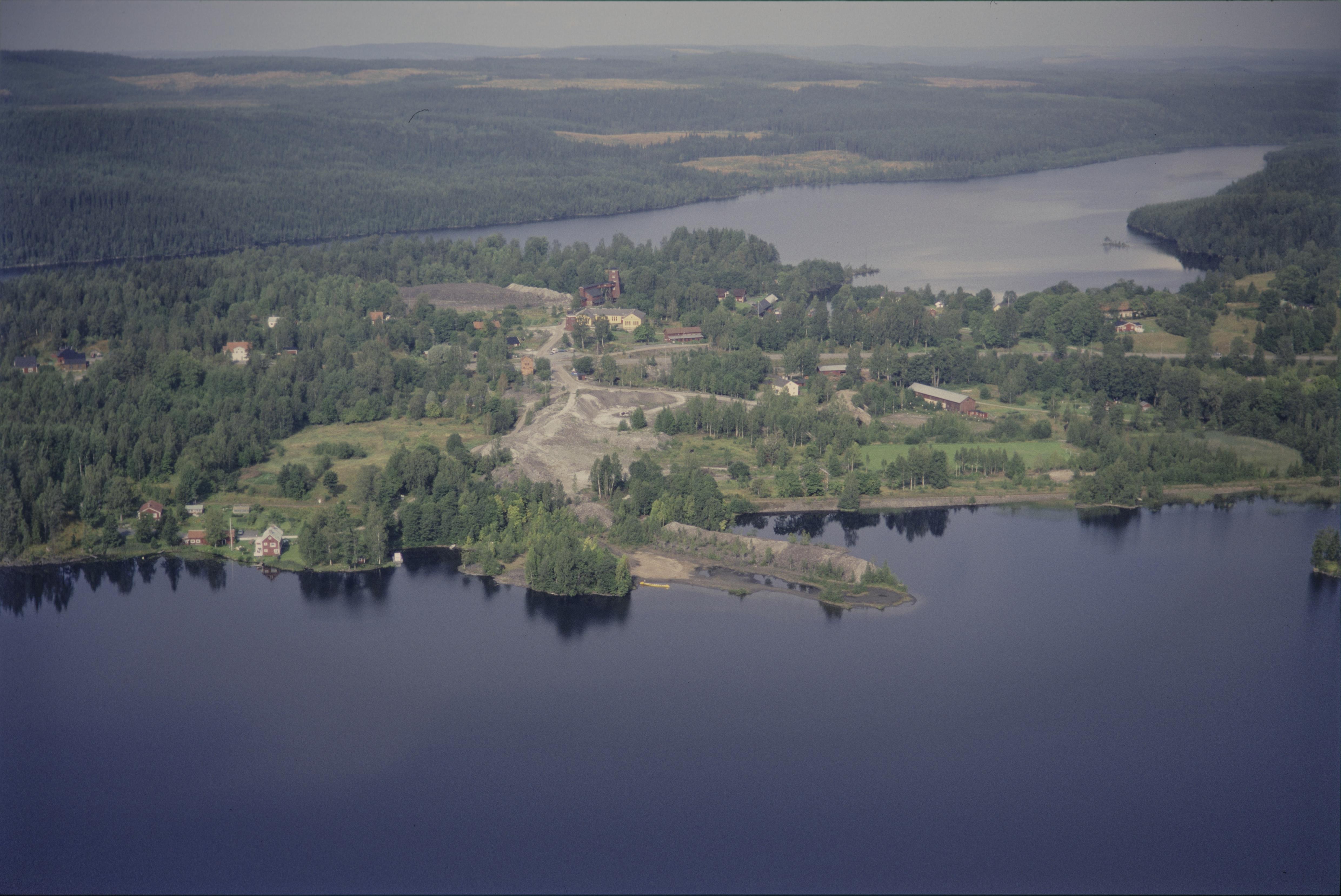 Beskrivning: Långban by mellan sjöarna Långban (i bildens nedre del) och Hyttsjön. Vid bildens mitt gruvområde RAÄnr Färnebo 548:1-6 och herrgården John Ericssongården, byggnadsminne RAÄnr Färnebo 557:1. Bilden är tagen mot (väderstreck): V