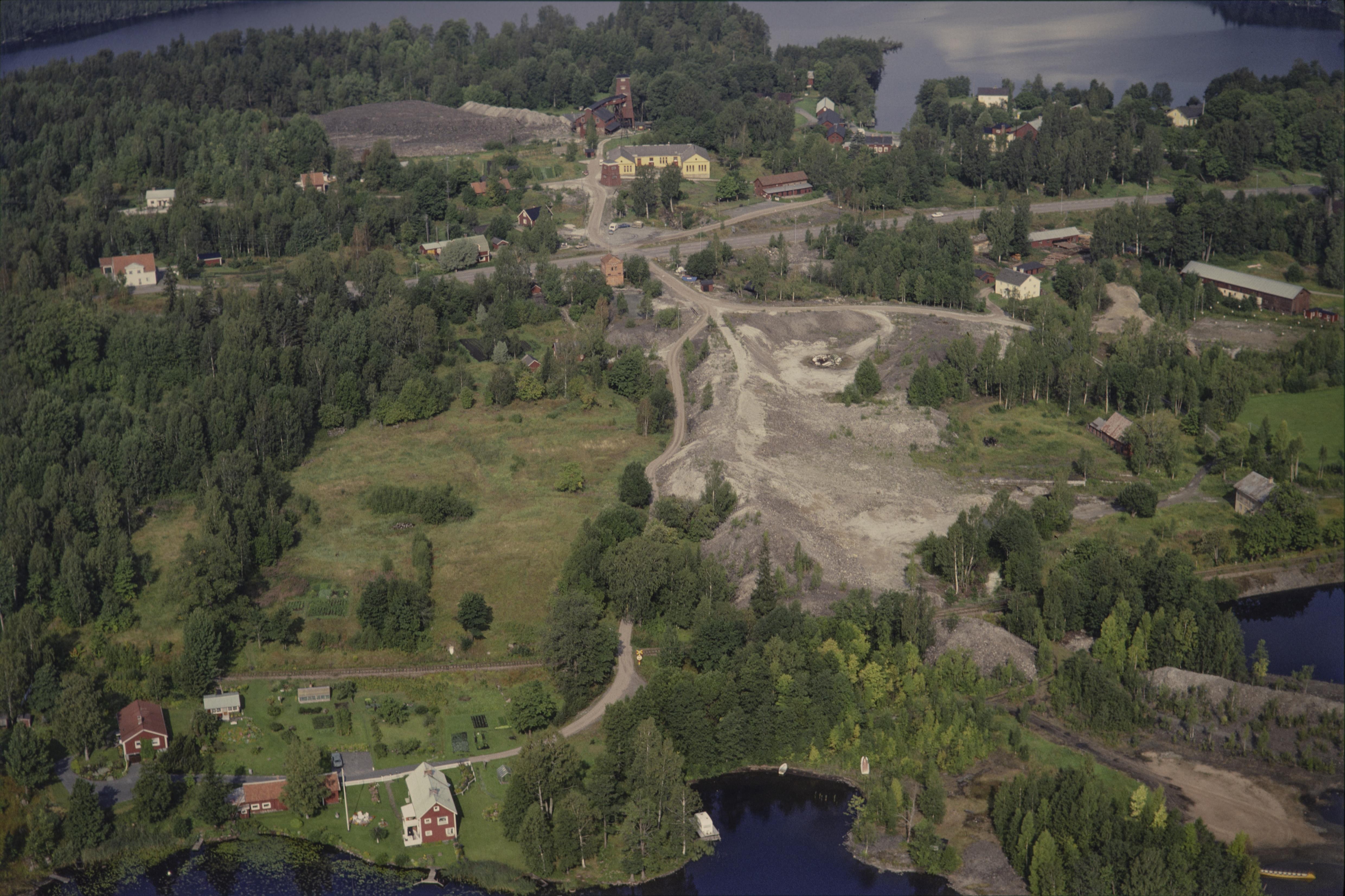 Beskrivning: Långban by mellan sjöarna Långban (i bildens nedre del) och Hyttsjön. Vid bildens mitt gruvområde RAÄnr Färnebo 548:1-6 och herrgården John Ericssongården, byggnadsminne RAÄnr Färnebo 557:1. Bilden är tagen mot (väderstreck): V