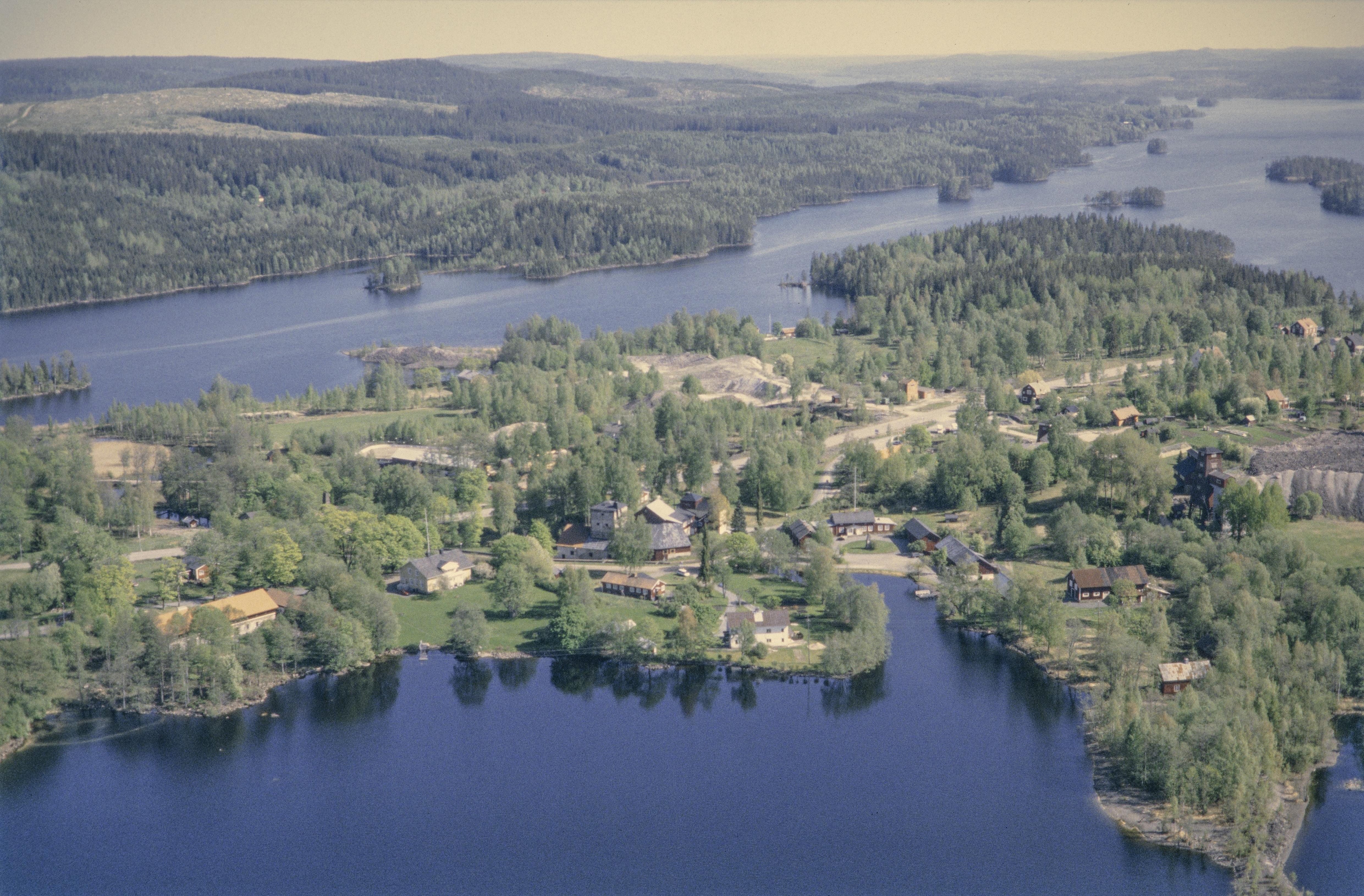 Beskrivning: Långban by mellan sjöarna Hyttsjön (i bildens nedre del) och Långban (i bildens övre del). Vid bildens mitt gruvområde RAÄnr Färnebo 548:1-6 med herrgården John Ericssongården, byggnadsminne RAÄnr Färnebo 557:1. Bilden är tagen mot (väderstreck): OSO