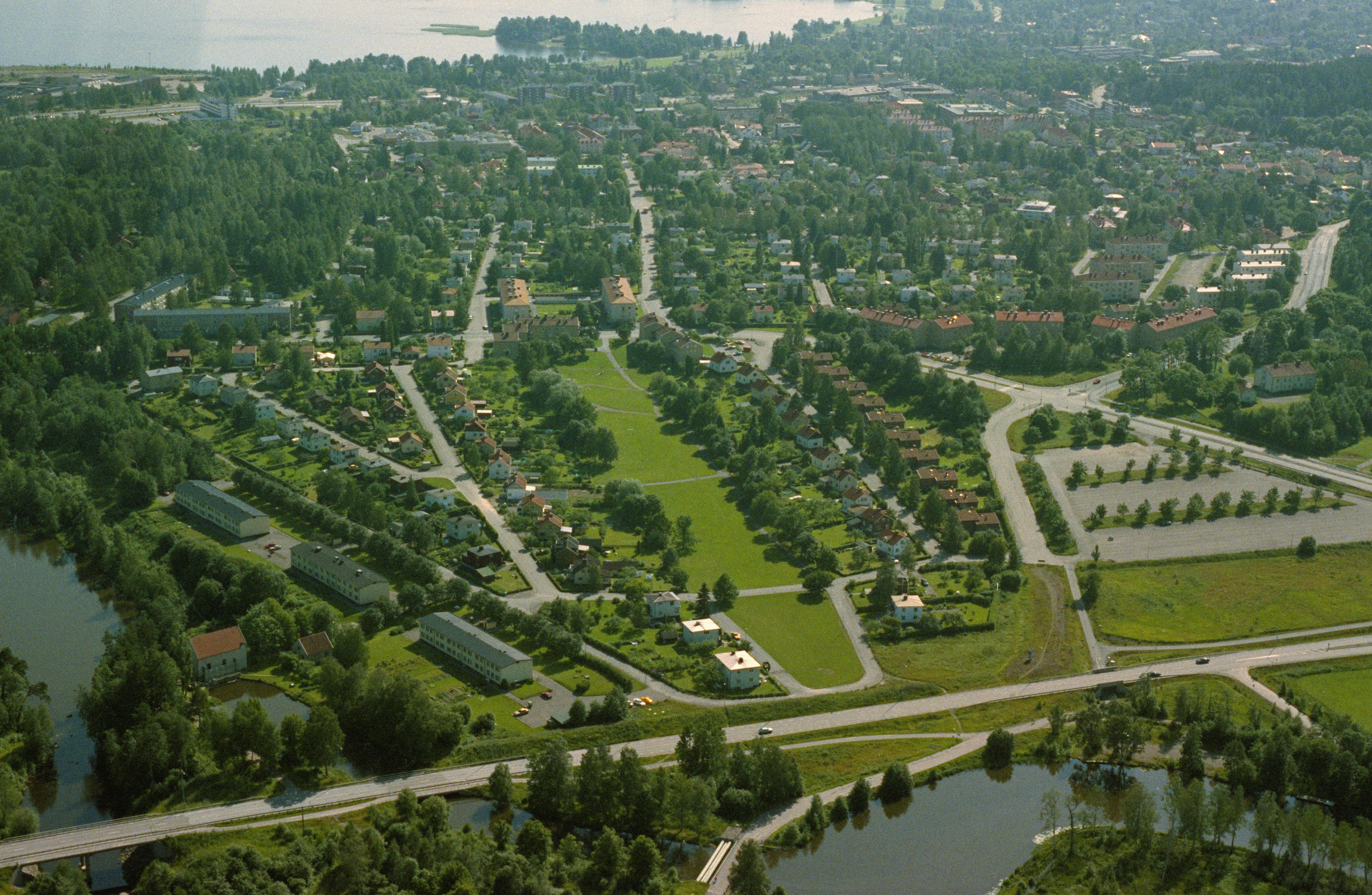 Beskrivning: Området Karls-Åby (skrivs även Carls-Åby) vid Timsälven i Karlskoga tätort. Bilden är tagen mot (väderstreck): SSV