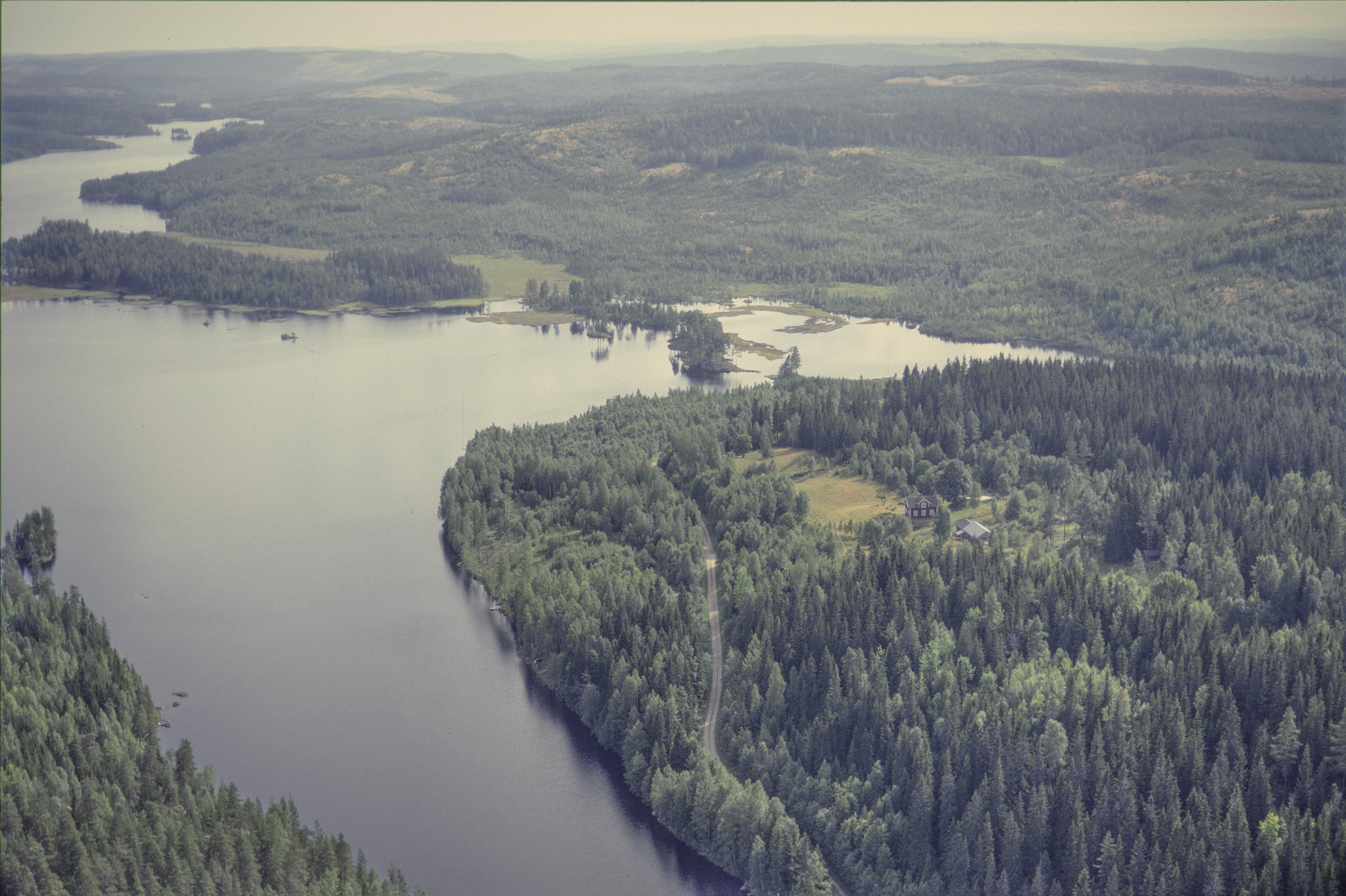 Beskrivning: Lomstorps finngård vid sjön Lomsen. I bildens övre del socknet Bogen. Till höger område med tjäreindustri RAÄnr Lekvattnet 215:1. Bilden är tagen mot (väderstreck): S