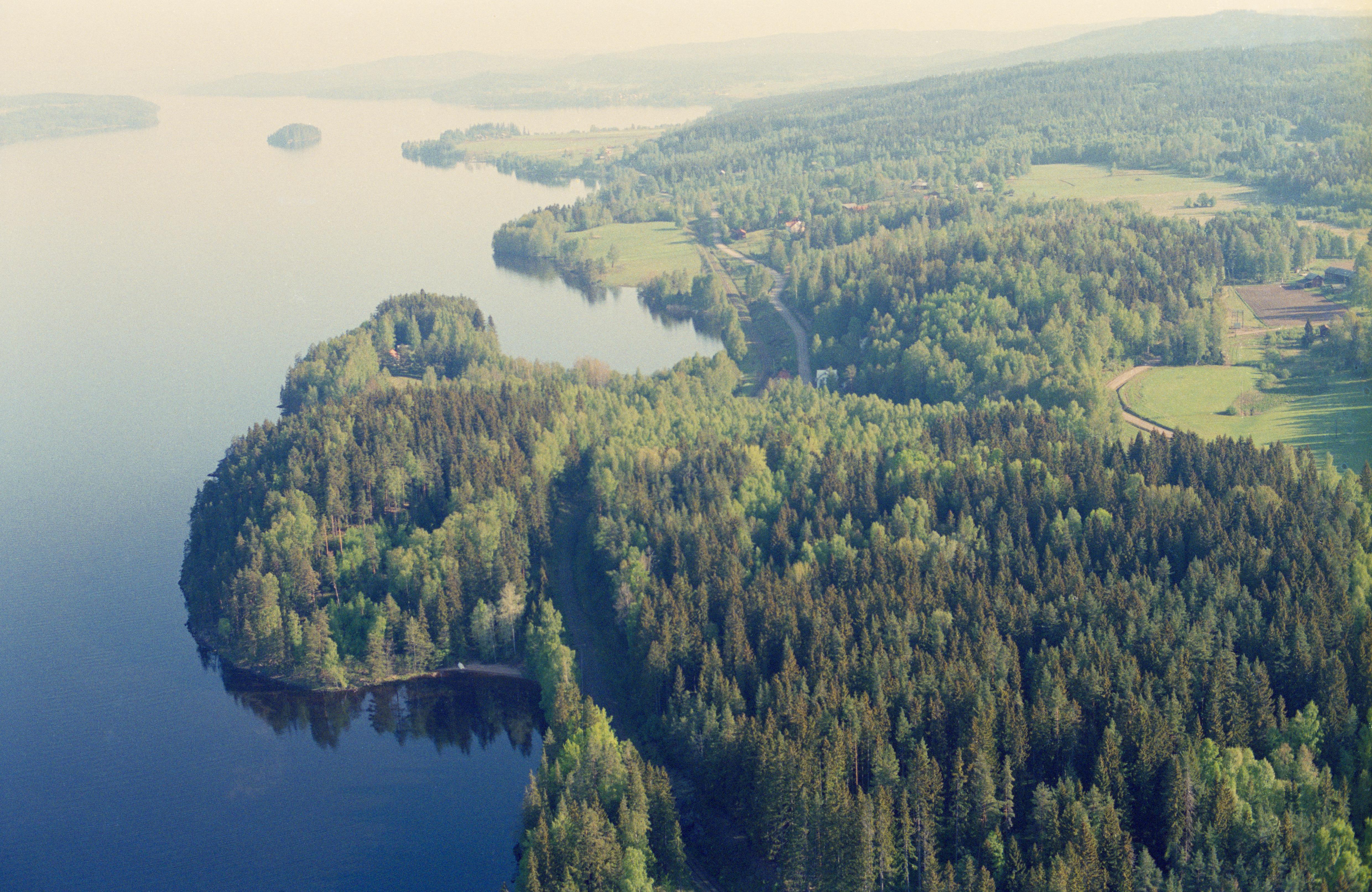 Beskrivning: Sjön Övre Fryken. Vid bildens mitt Ivarsbjörke och Uddeholm vid gränsen mot socknet Lysvik (i bildens högra del). Röse RAÄnr Sunne 45:1, 46:1-2, 47:1 m.fl. Bilden är tagen mot (väderstreck): N