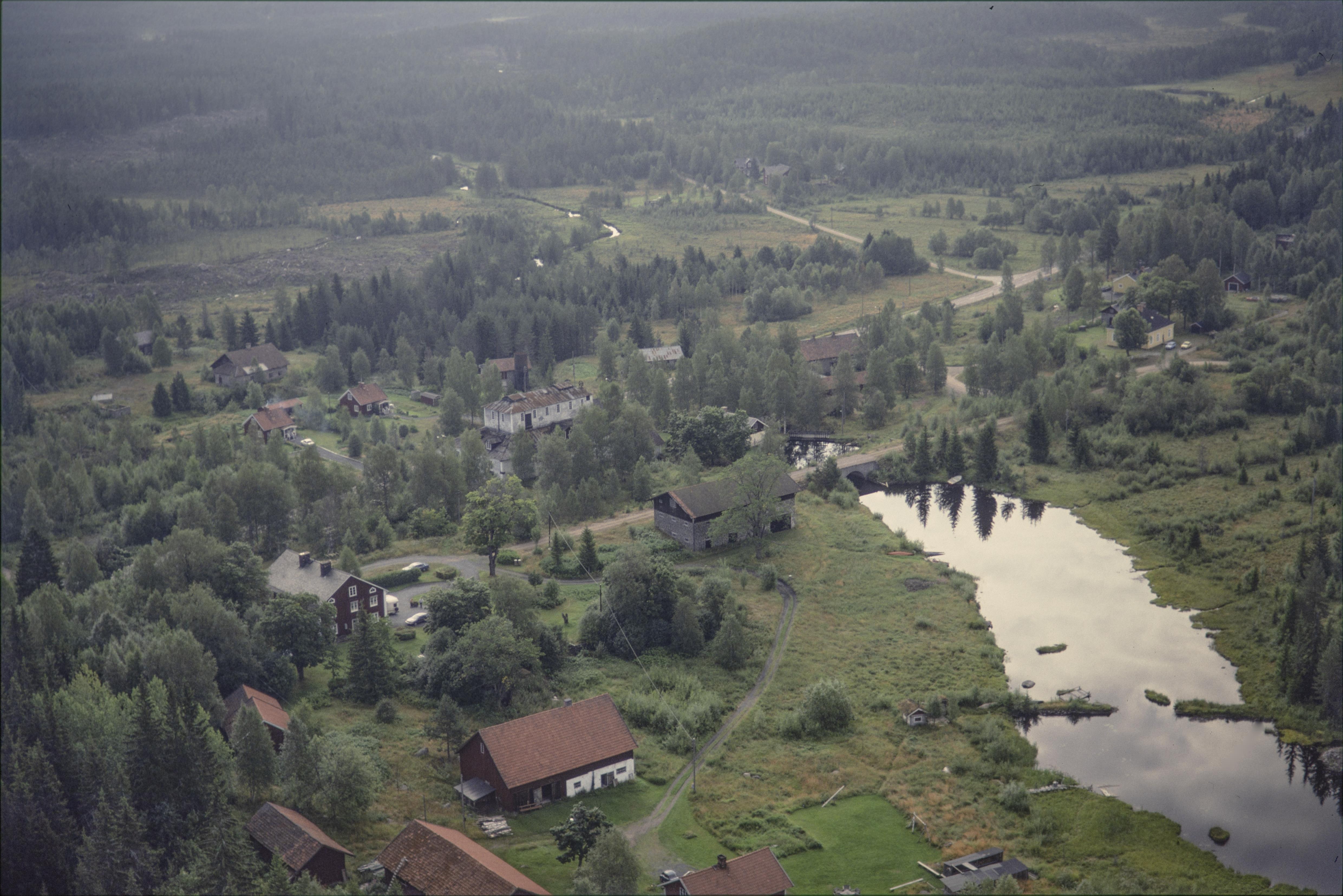 Beskrivning: Motjärnshyttan byggnadsminne RAÄnr Nordmark 15:1-2 mellan Hyttjärnen och Hyttälven. Herrgården vid bildens mitt. Bilden är tagen mot (väderstreck): SO