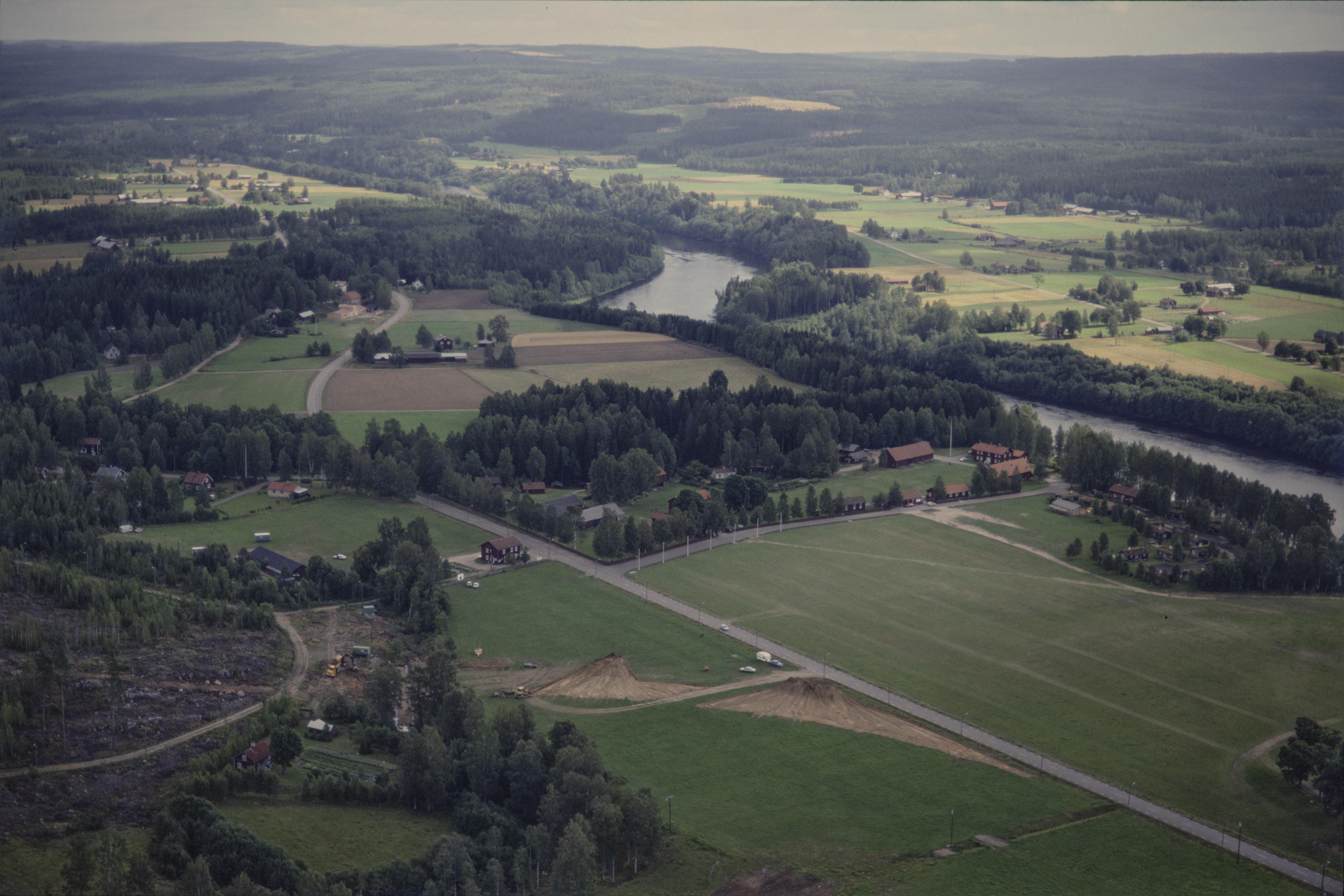 Beskrivning: Klarälven vid Högsby. Vid bildens mitt Ransäters hembygdsgård RAÄnr Ransäter 10:1. Bilden är tagen mot (väderstreck): Ö