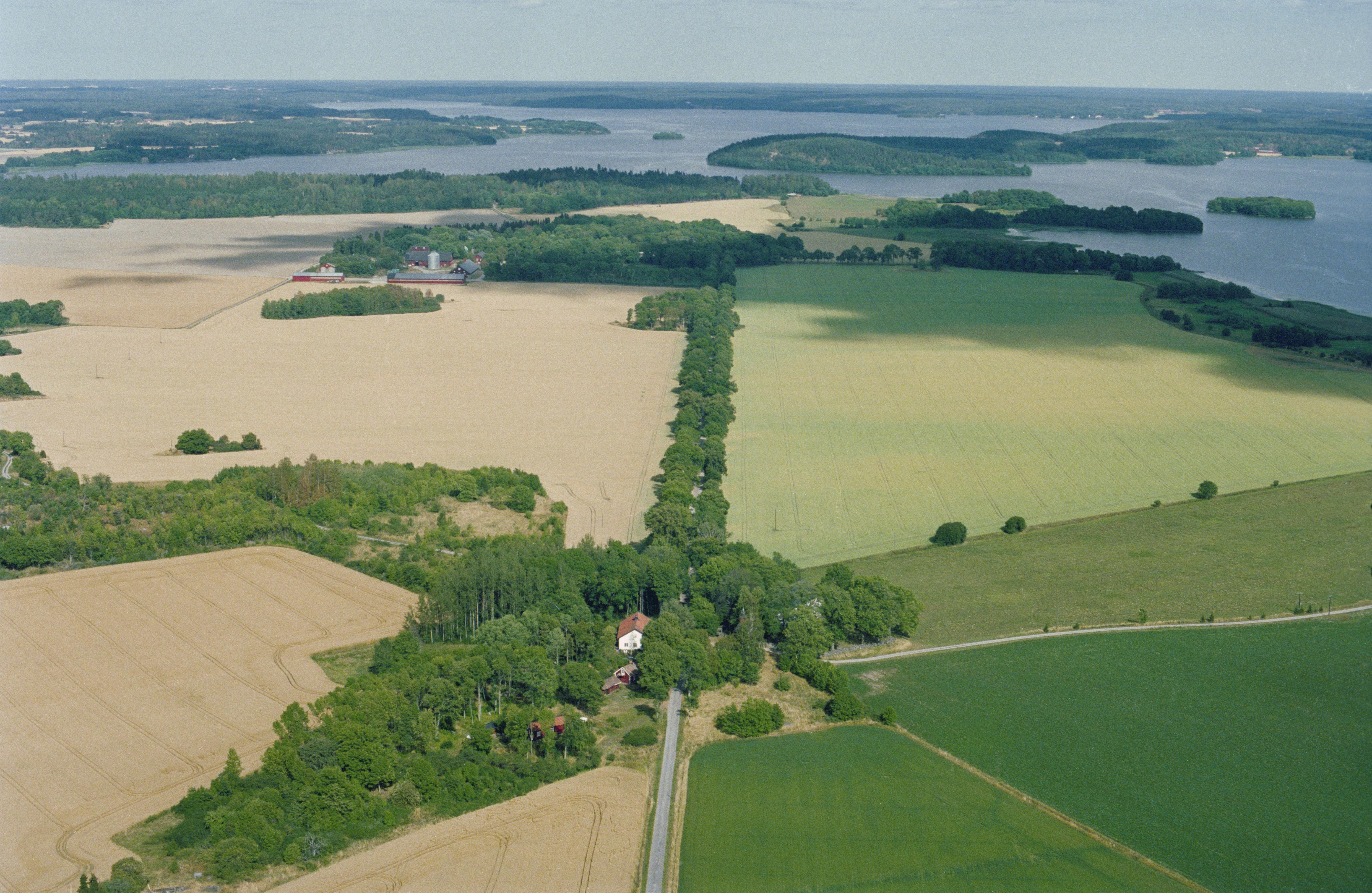 Beskrivning: Under bildens mitt Holms kyrka. Över bildens mitt allén mot Sjö slott (skrivs även Sjöö slott) RAÄnr Holm 8:1. I bildens övre del Gorran i Mälaren. Bilden är tagen mot (väderstreck): NO