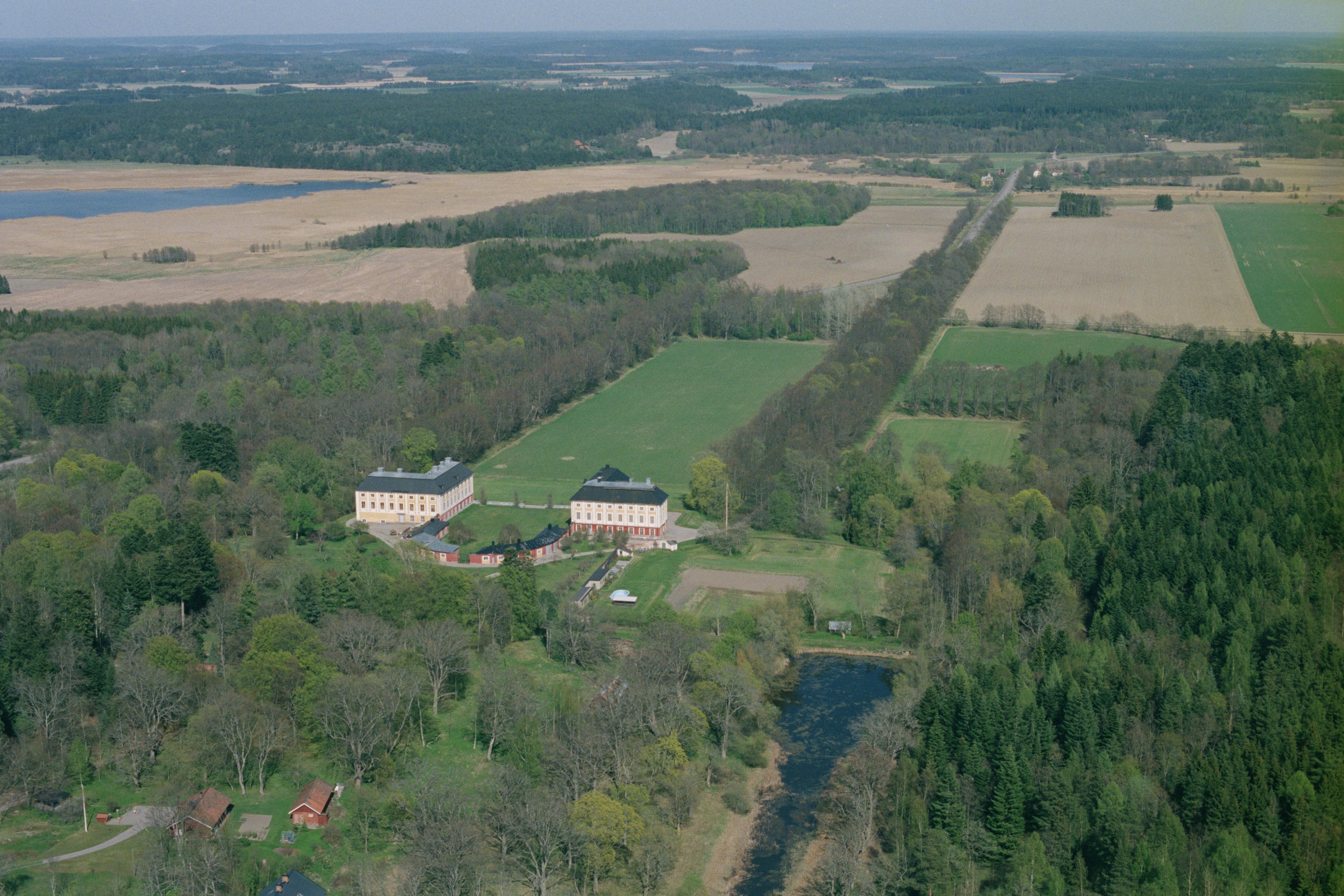Beskrivning: Ekolsunds slott byggnadsminne RAÄnr Husby-Sjutolft 125:1. Hjälstaviken i bildens övre del. Bilden är tagen mot (väderstreck): NO