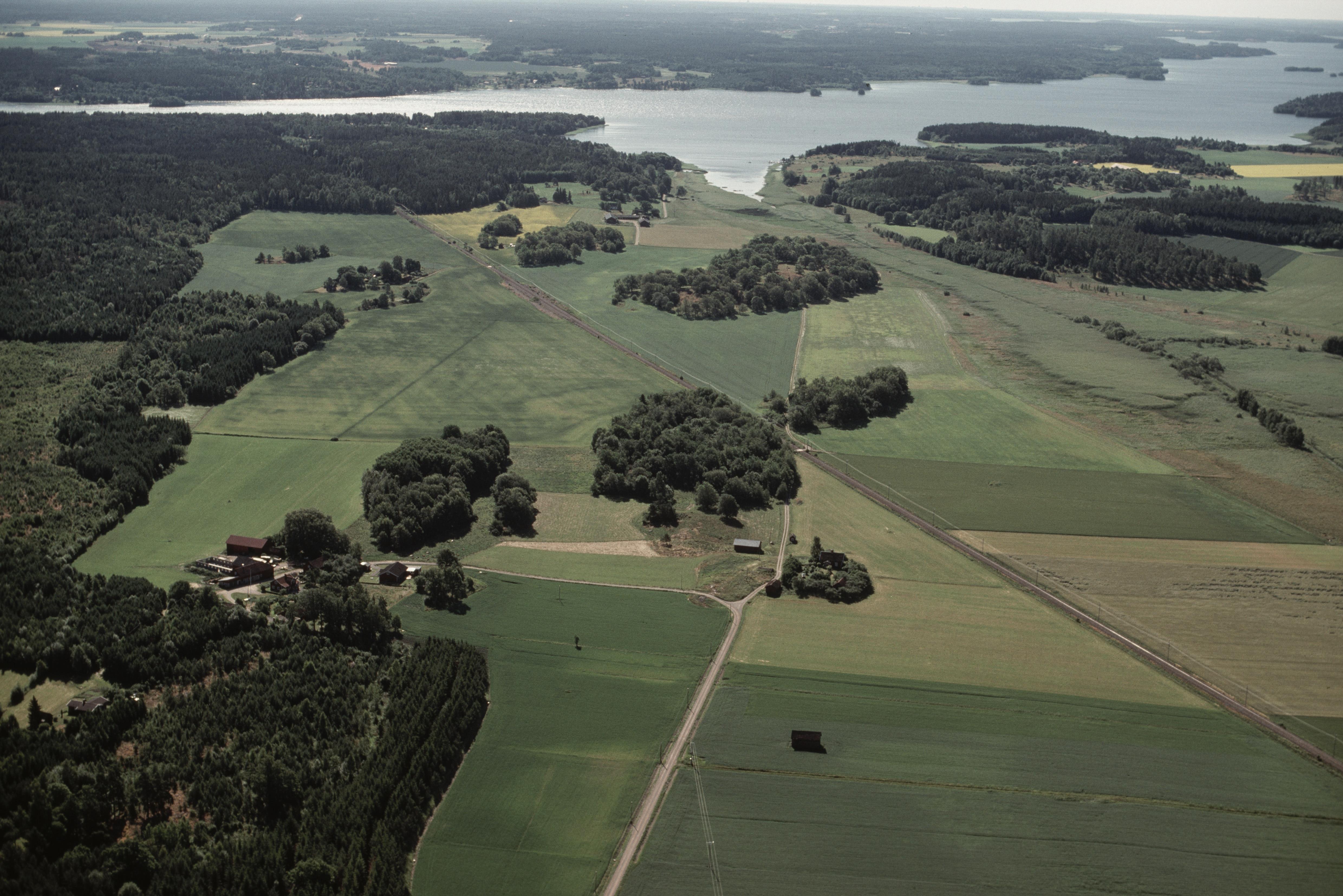 Beskrivning: Fornlämningsområde vid gårdarna Lundsberg, Hammarstorp och Sisshammar. Vid bildens mitt bl.a. gravfält RAÄnr Husby-Sjutolft 188:1. I bildens övre del Ekolsundsviken i Mälaren. I bilden även delar av socknen Vinberga och Löt. Bilden är tagen mot (väderstreck): OSO