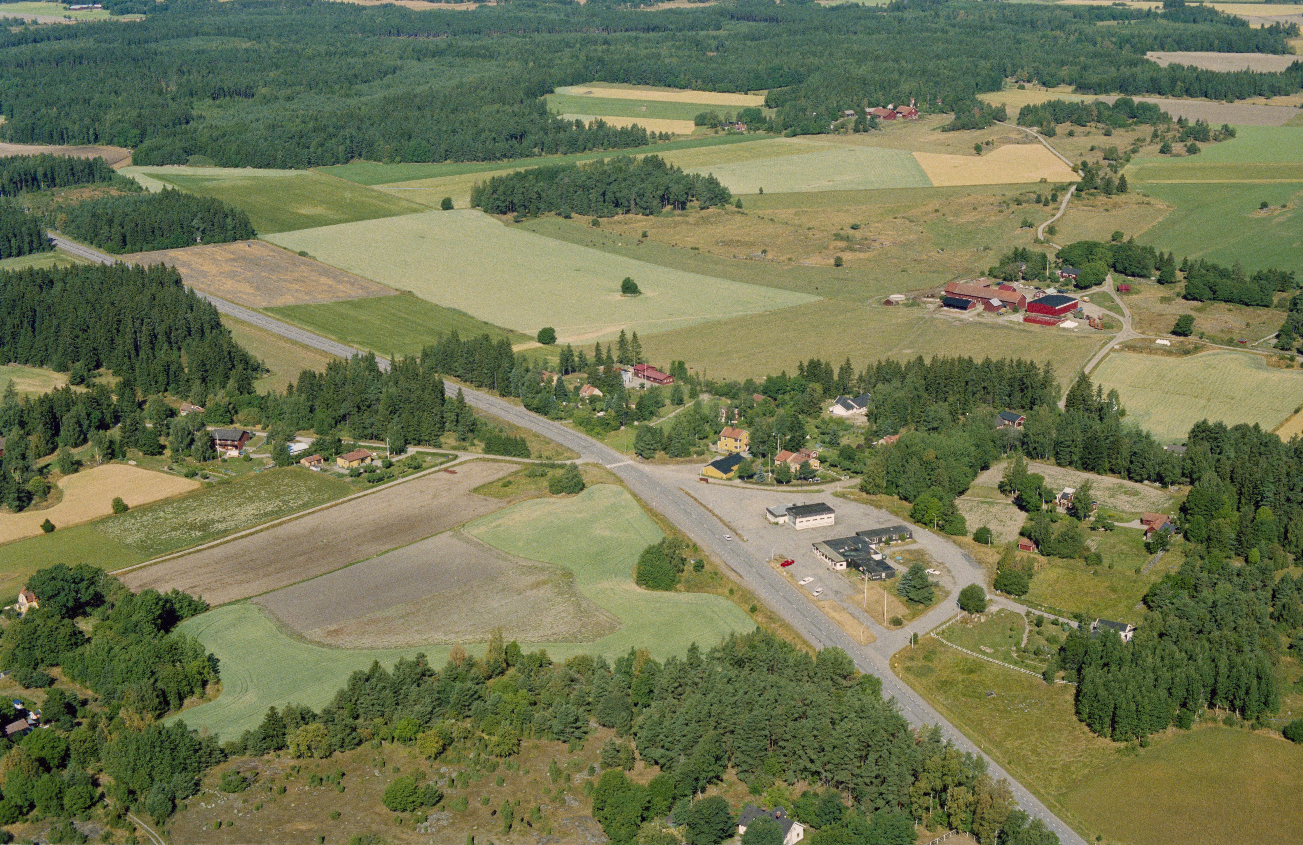 Beskrivning: Taxnäs motell vid bildens mitt. I bildens nedre kant gravfält RAÄnr Husby-Sjutolft 56:1. Bilden är tagen mot (väderstreck): NV