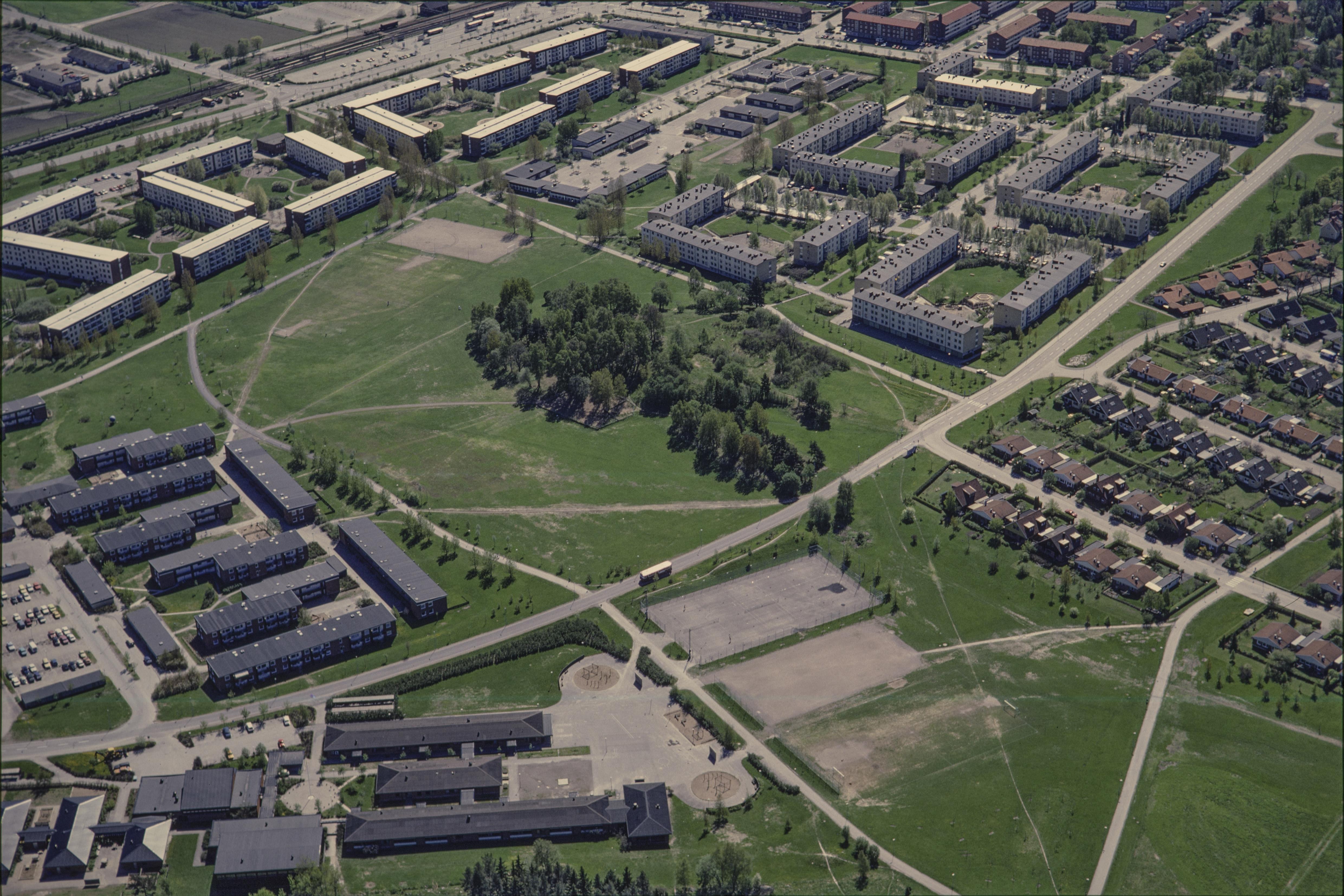 Beskrivning: Märsta tätort. Stensättning RAÄnr Husby-Ärlinghundra 9:1 vid bildens mitt. Bilden är tagen mot (väderstreck): SO