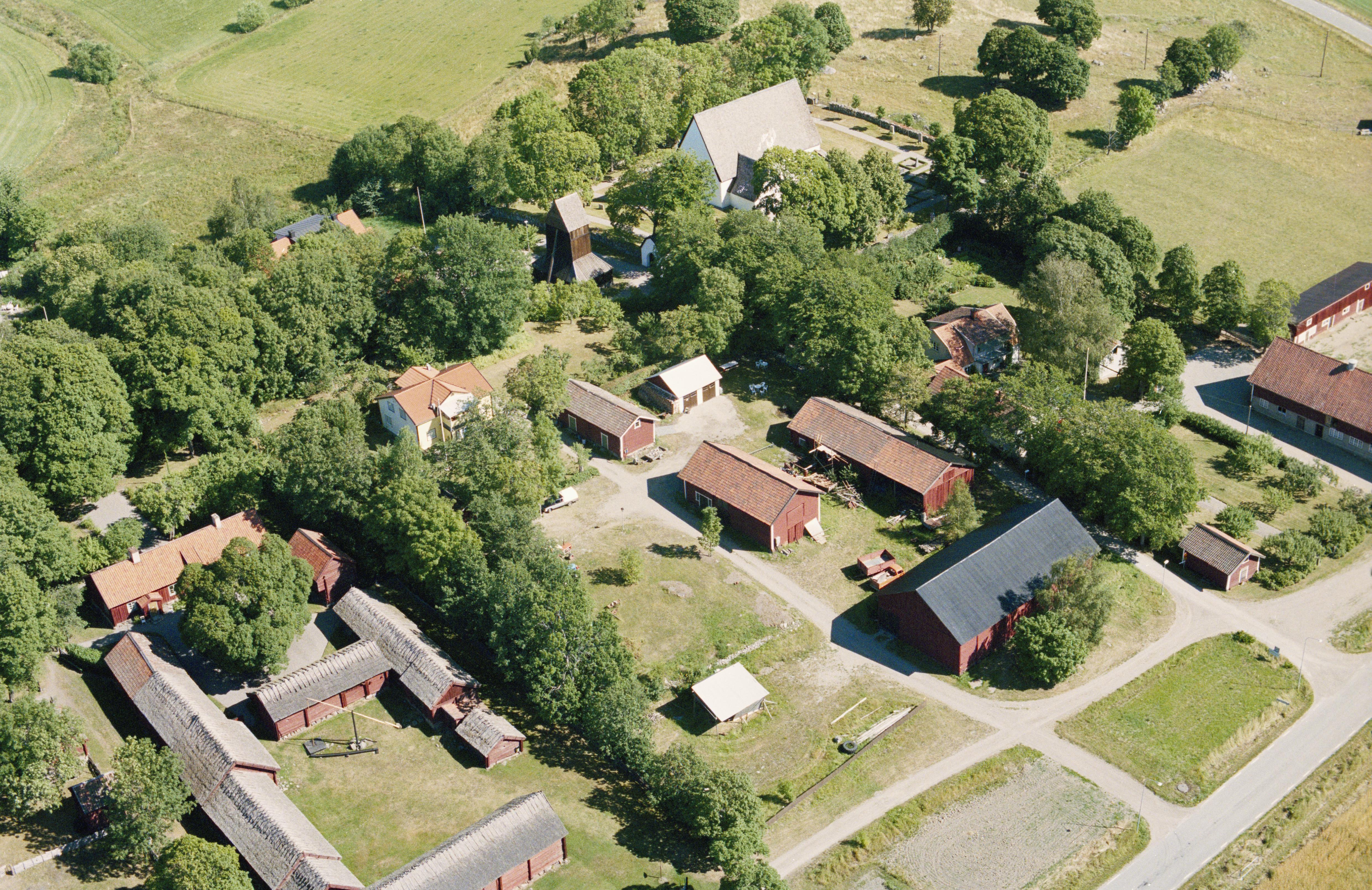 Beskrivning: Härkeberga kyrka och kyrkby. Bilden är tagen mot (väderstreck): NO