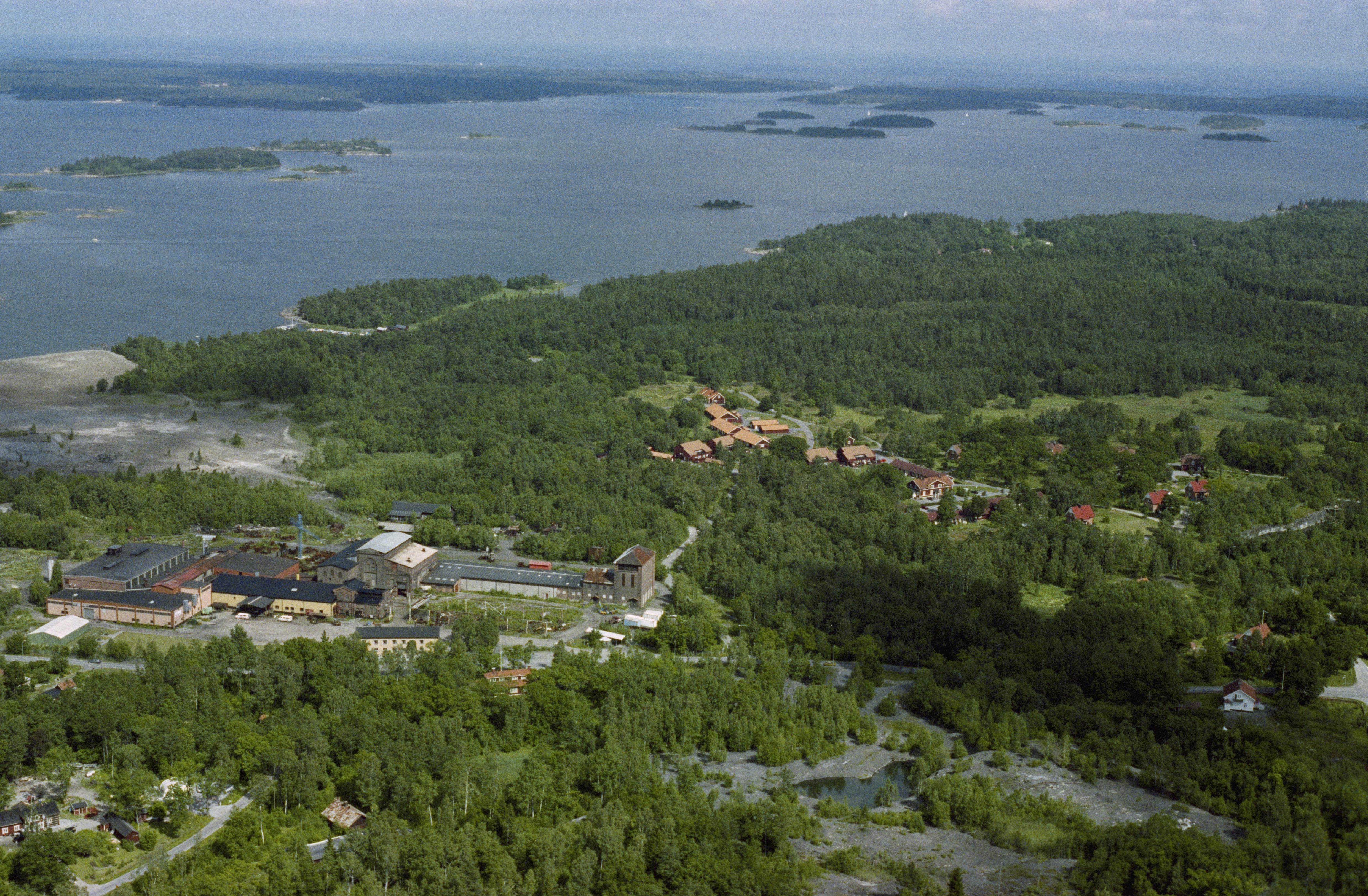 Beskrivning: Herrängs bruk, tätort och gruvområde vid Singöfjärden. I bildens nedre del gjuteri RAÄnr Häverö 355:1, gruvhål Häverö 410:1 m.fl. I bildens övre del socknen Harg och Singö. Bilden är tagen mot (väderstreck): NO