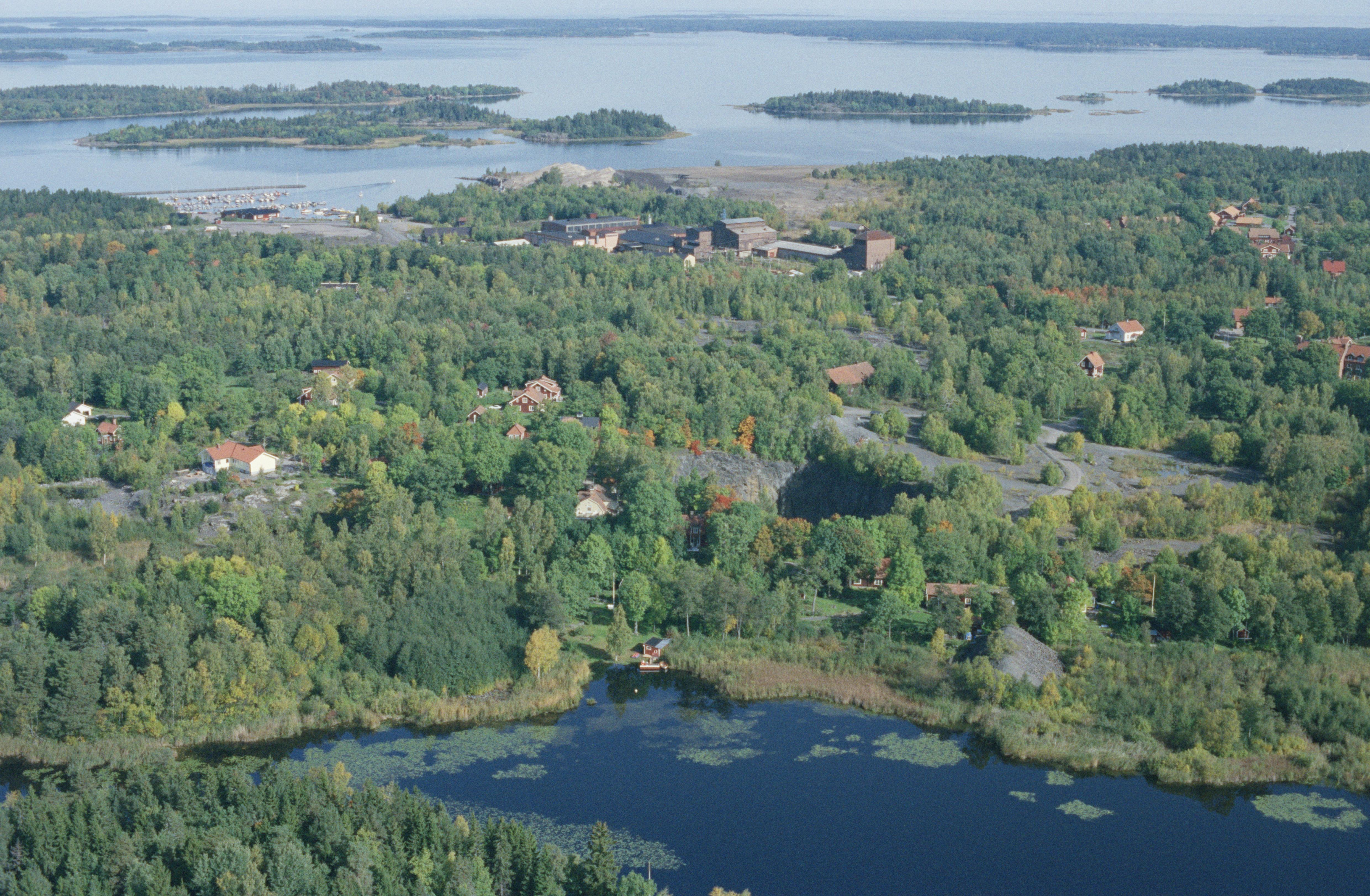 Beskrivning: Herrängs bruk, tätort och gruvområde vid Singöfjärden. I bildens övre del gjuteri RAÄnr Häverö 355:1, gruvhål Häverö 410:1 m.fl. I bildens nedre del sjön Blåkaren. I bildens övre kant socknen Harg och Singö. Bilden är tagen mot (väderstreck): NO