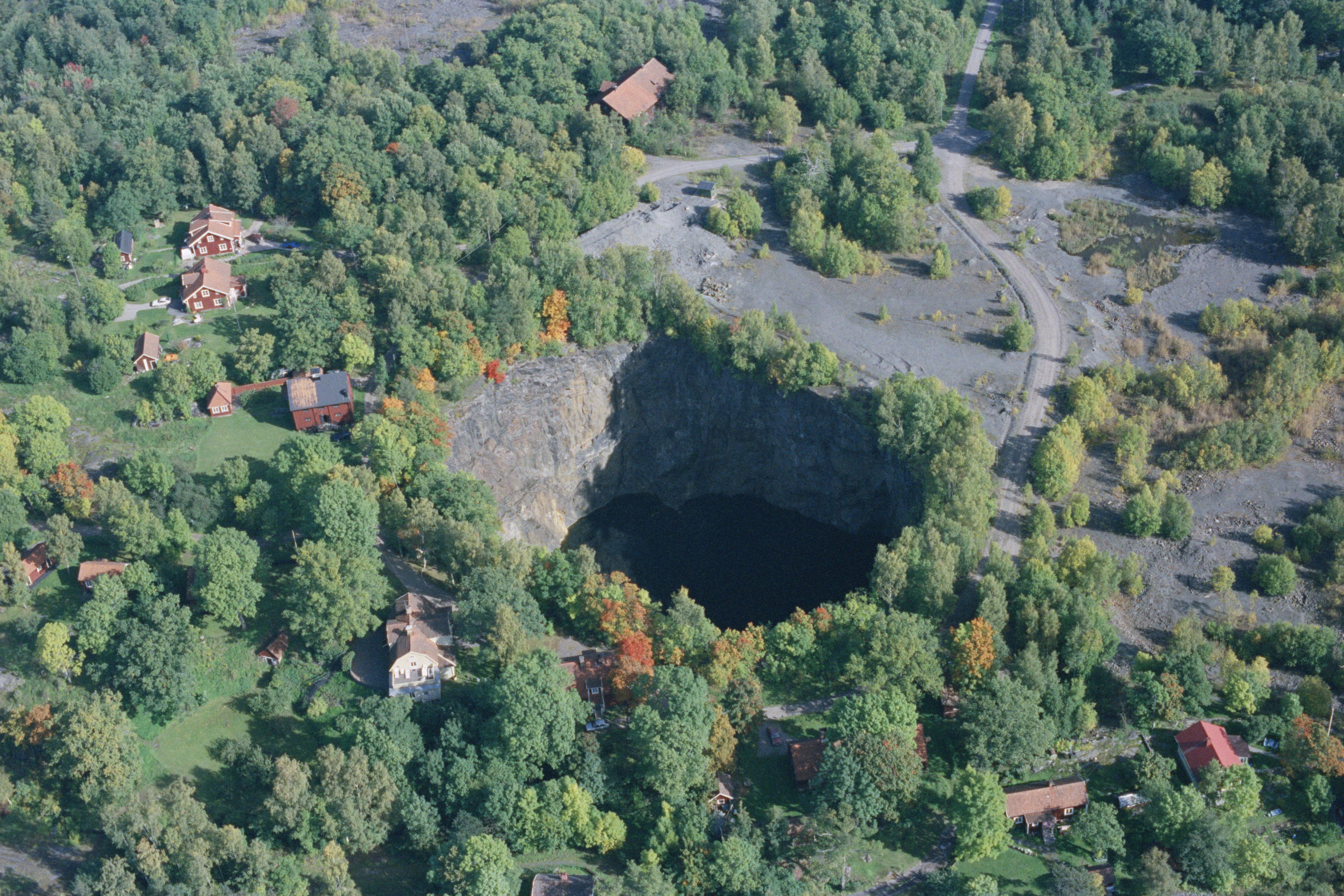 Beskrivning: Herrängs bruk, tätort och gruvområde vid Singöfjärden. Eknäsgruvan RAÄnr Häverö 356:1. Bilden är tagen mot (väderstreck): NO