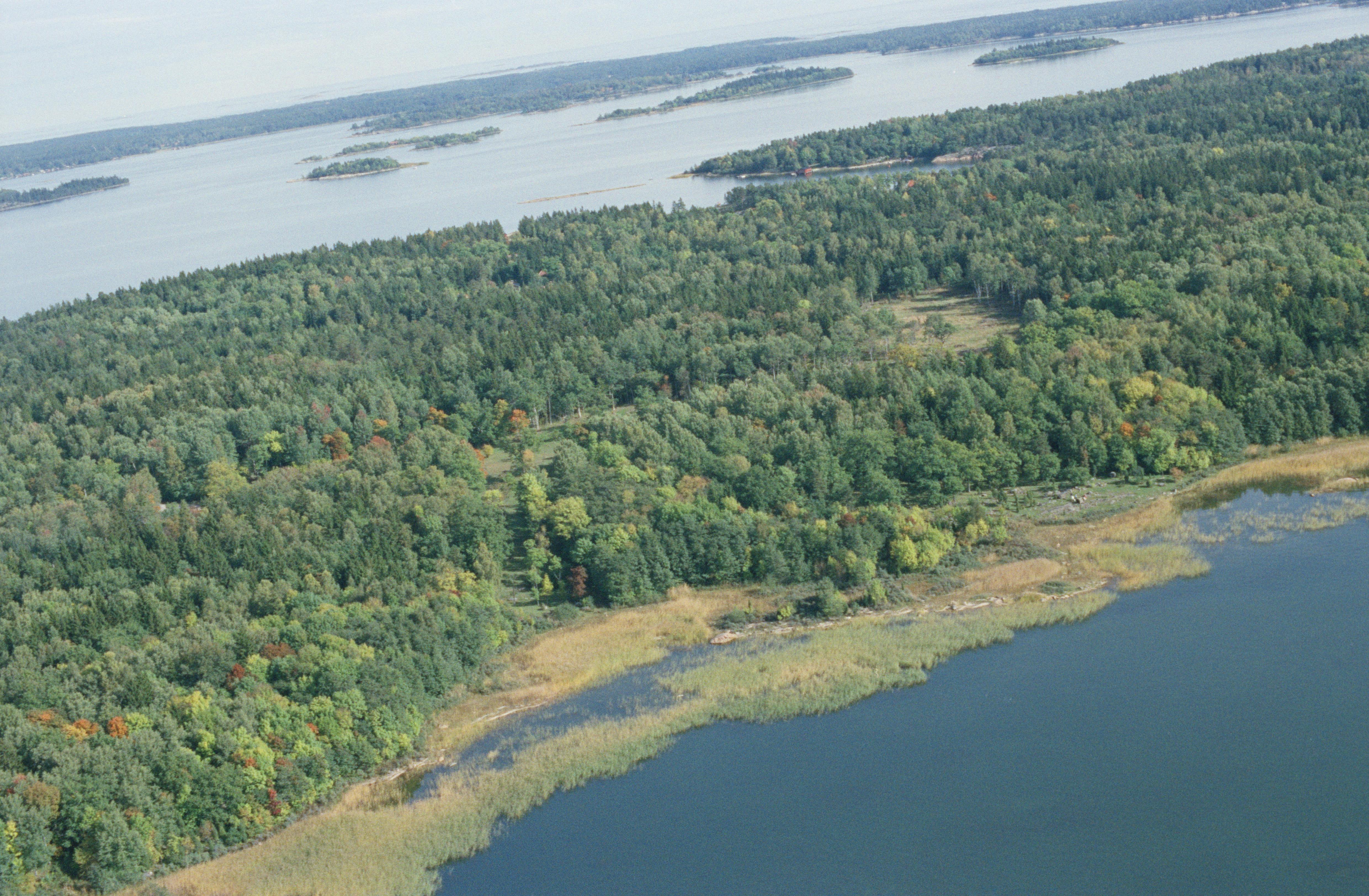 Beskrivning: Singöfjärden. Prästängens naturreservat vid Rotholmviken. Bilden är tagen mot (väderstreck): NNO