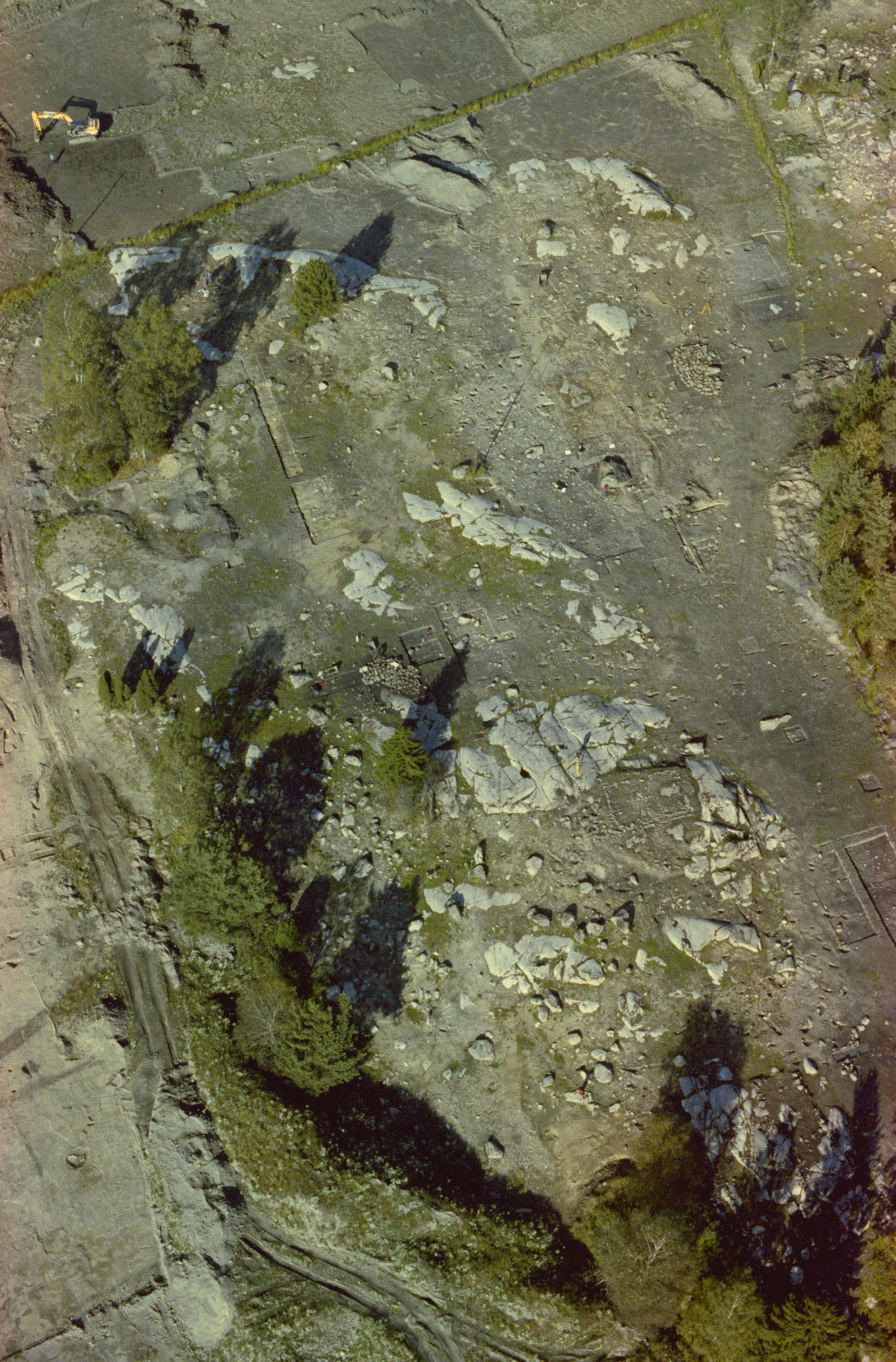 Beskrivning: Arkeologisk undersökning av Lustigkulla soldattorp och Adolfsberg norr om Vrå gård i området Alsike. Stensättningar, boplatser, gravfält, hällristningar, fornåkrar RAÄnr Knivsta 16:1-6, 302, 306, 308, 311 m.fl. Bilden är tagen mot (väderstreck): NNO