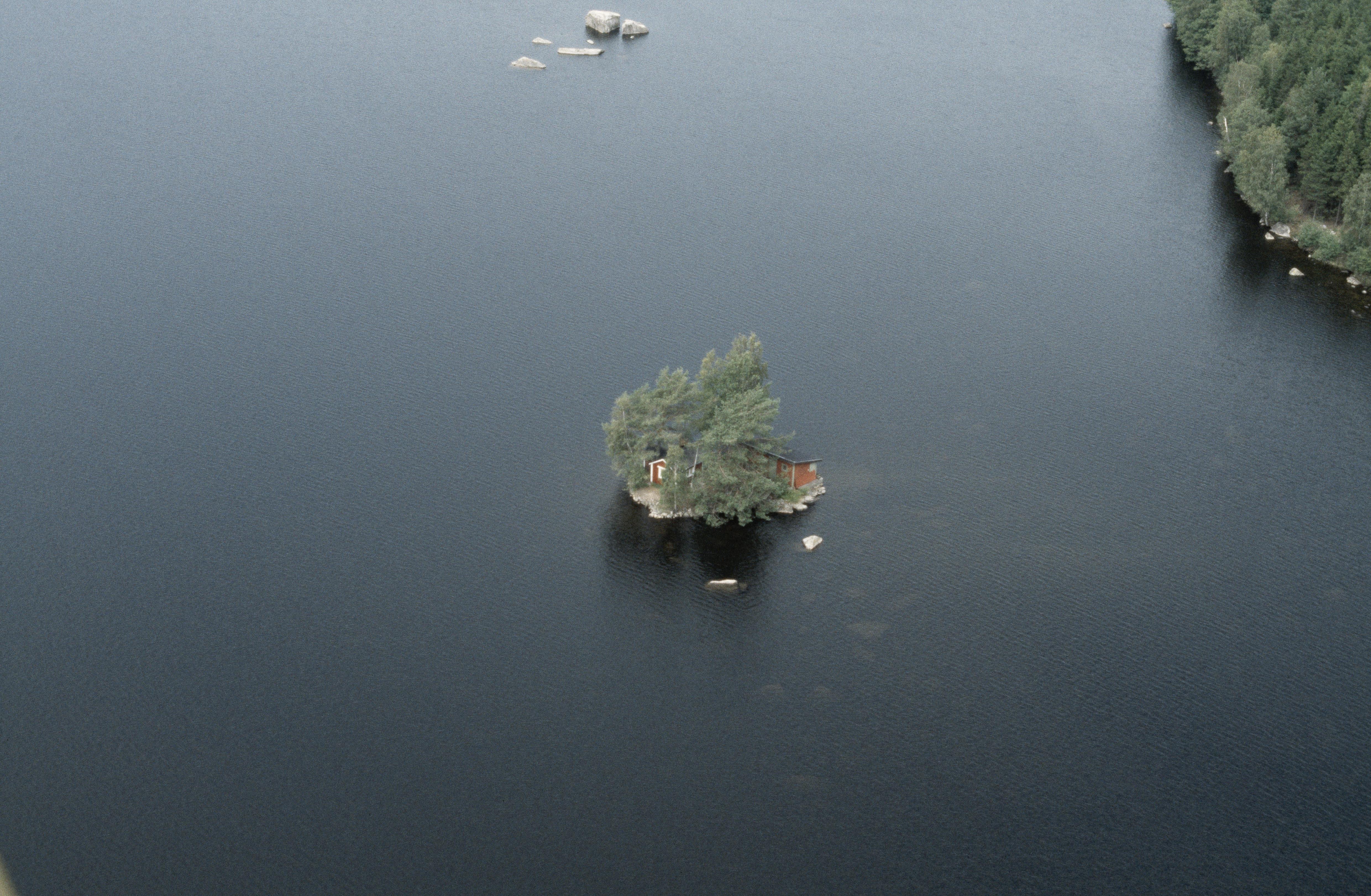 Beskrivning: Liten holme med byggnader väster om Söderön i sjön Halen. Skären Måshallarna i bildens övre del. Bilden är tagen mot (väderstreck): N