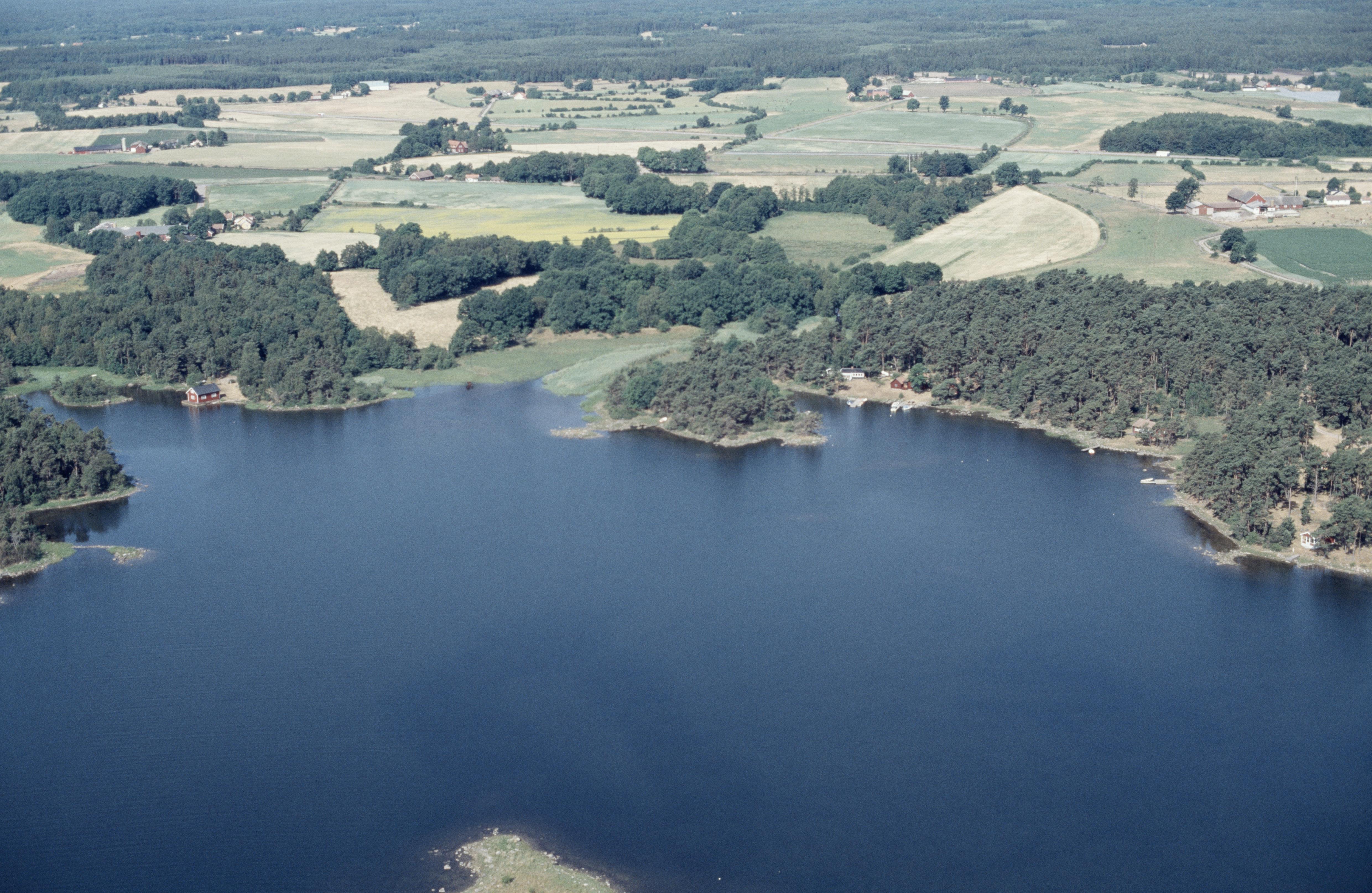 Beskrivning: Ån Brömsebäck markerar gränsen Kristianopel/Söderåkra s:nr och gränsen Småland/Blekinge. Borg Brömsehus RAÄnr Kristianopel 1:1 t.v. I bildens högra del Bröms i Söderåkra sn och Riksintressen "H39 - Bröms? och "H101 - Grisbäck". Bilden är tagen mot (väderstreck): SV