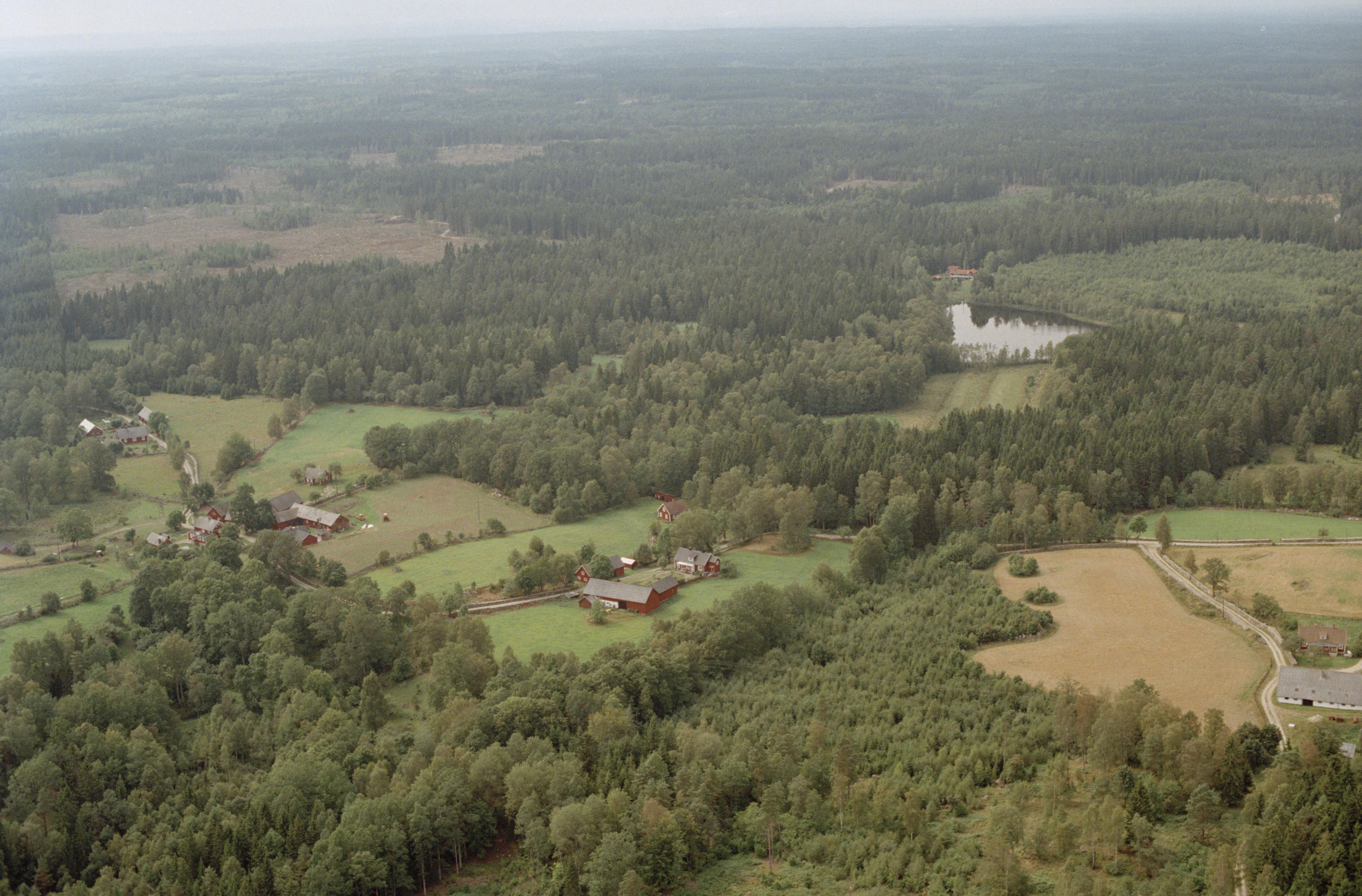 Beskrivning: Letesmåla by. Under bildens mitt torplämning RAÄnr Ringamåla 131. Sjön Lergyl till höger om bildens mitt. Bilden är tagen mot (väderstreck): VSV