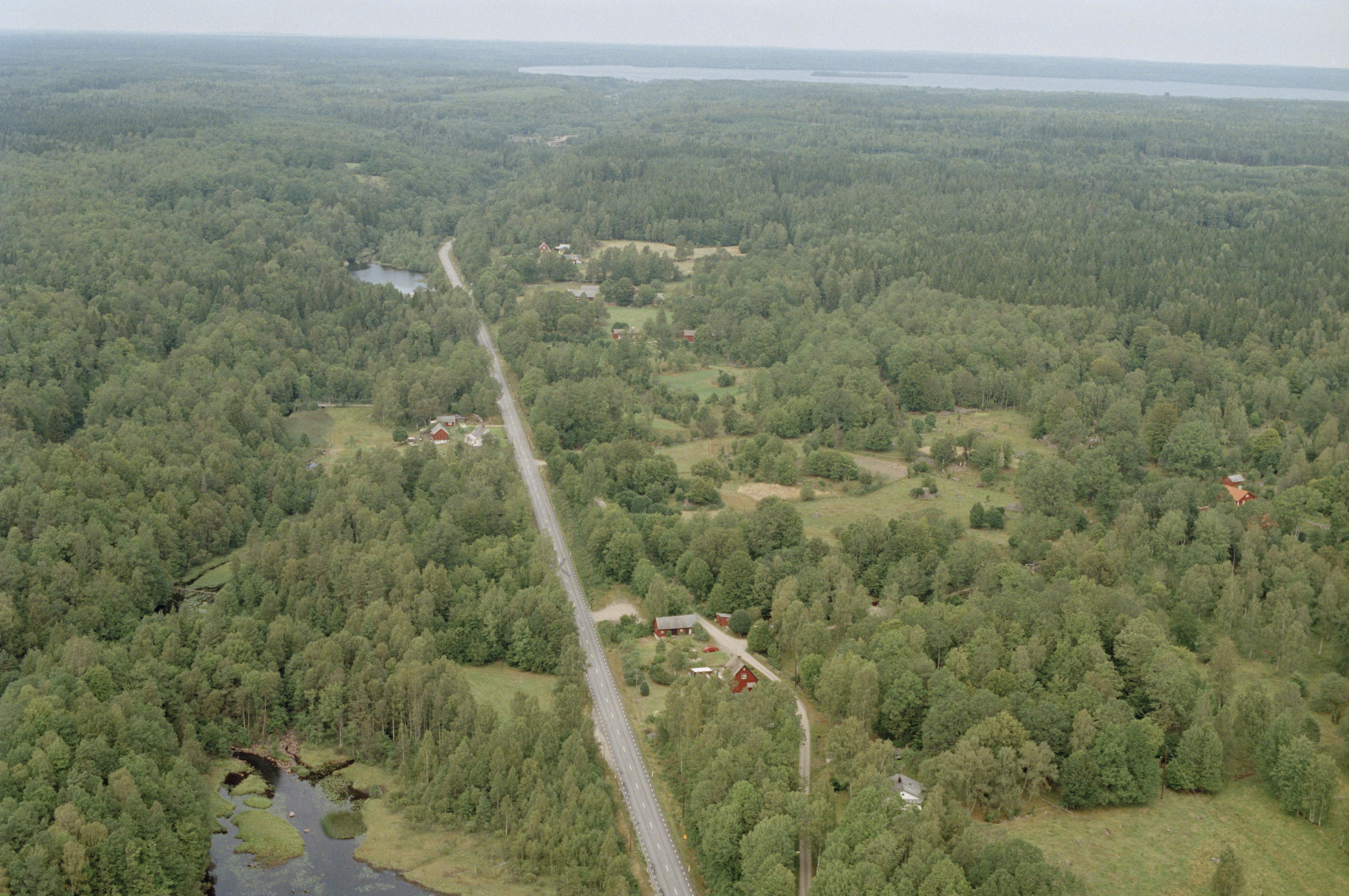 Beskrivning: Mieåns dalgång. I bildens nedre del Ire by. I bildens övre del byn Bergfors i Lobergets naturreservat. Vid vägen i bildens mitt vägmärke RAÄnr Ringamåla 4:1. Bilden är tagen mot (väderstreck): N